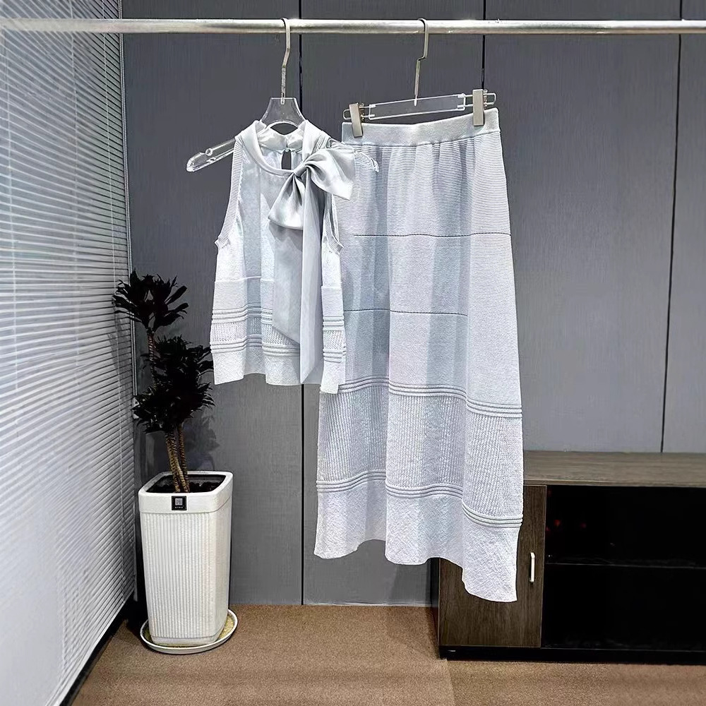 심천 난유 프렌치 스타일의 우아한 홀터넥 니트 스웨터와 스커트, 여성용 나이를 줄여주는 세련된 투피스 세트, 2026년 신상스토어 가기
