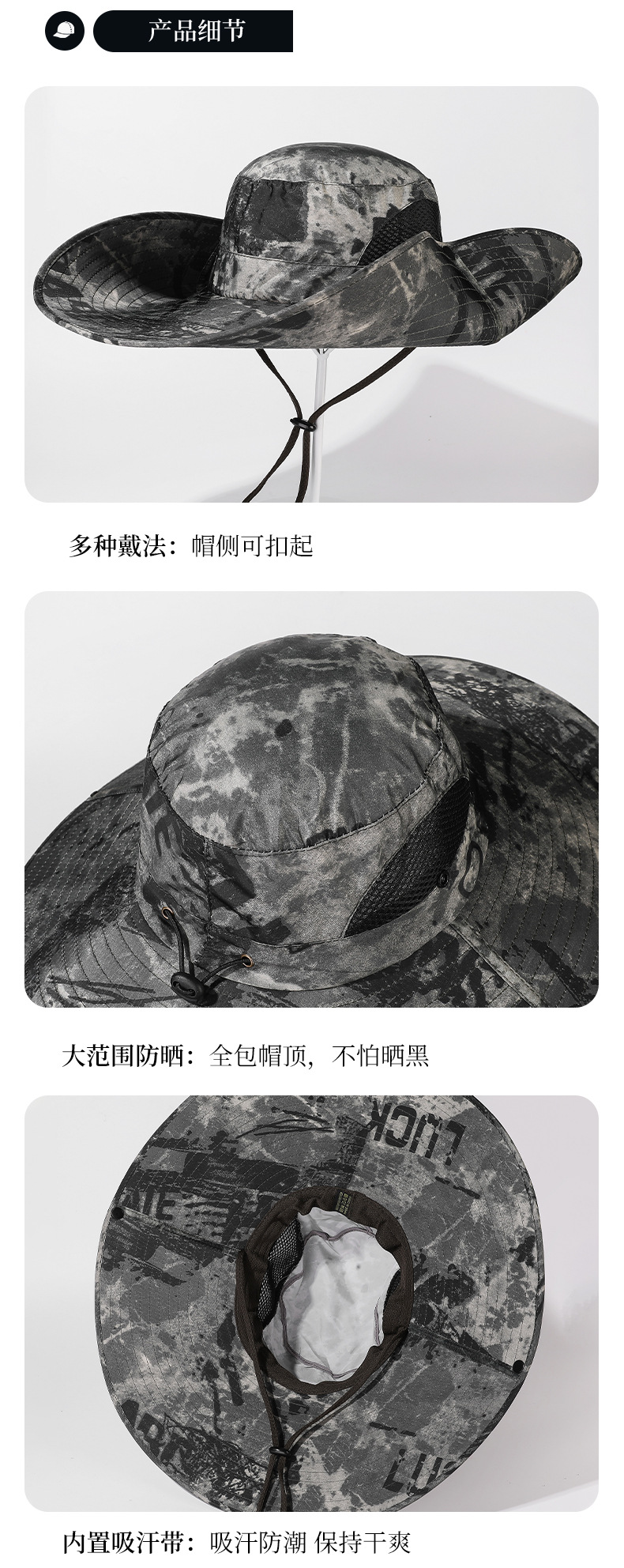 국경 간 야외 대형 챙 모자 여름 등산 여행 낚시 태양 보호 모자 위장 천 태양 보호 UV 태양 모자스토어 가기