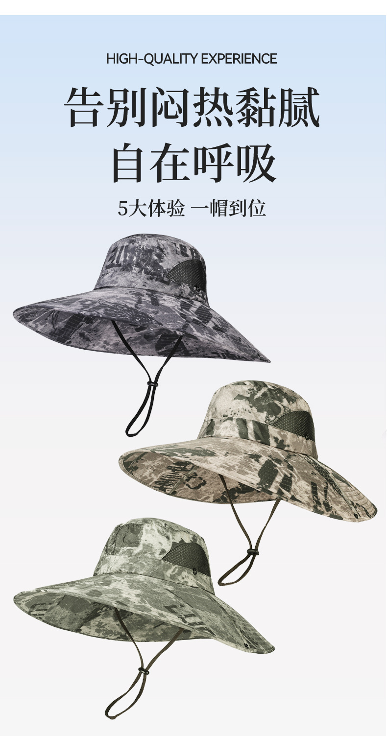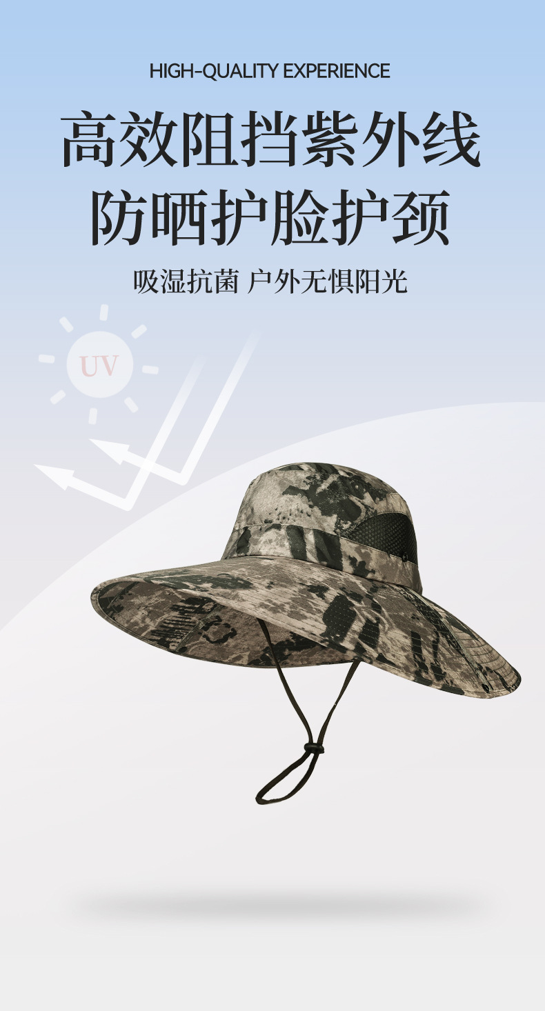 국경 간 야외 대형 챙 모자 여름 등산 여행 낚시 태양 보호 모자 위장 천 태양 보호 UV 태양 모자