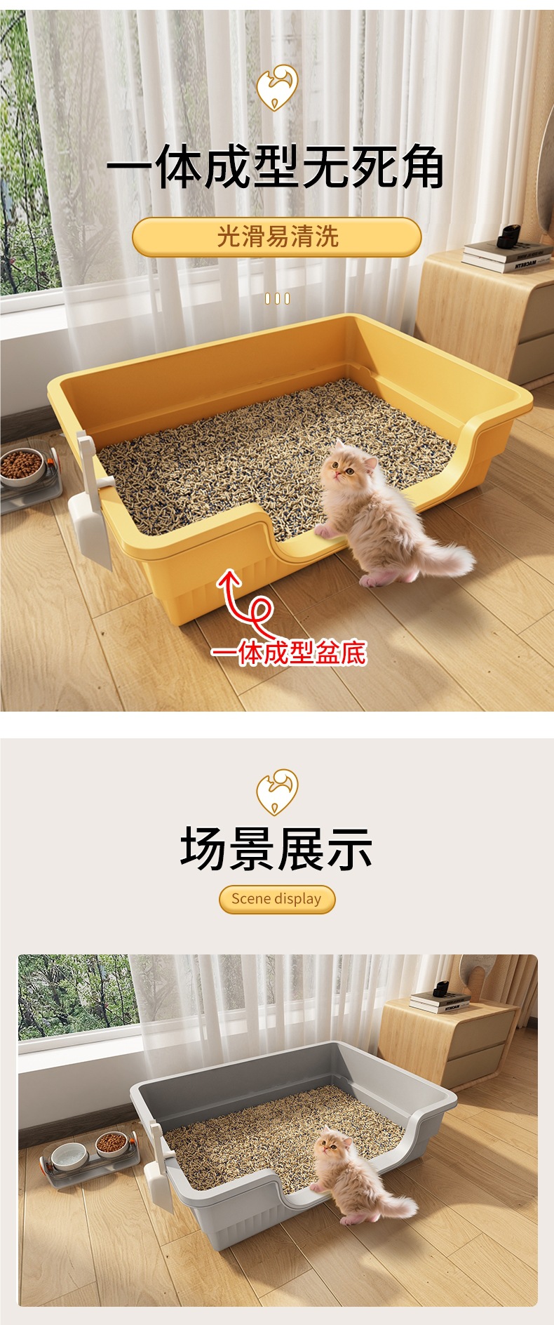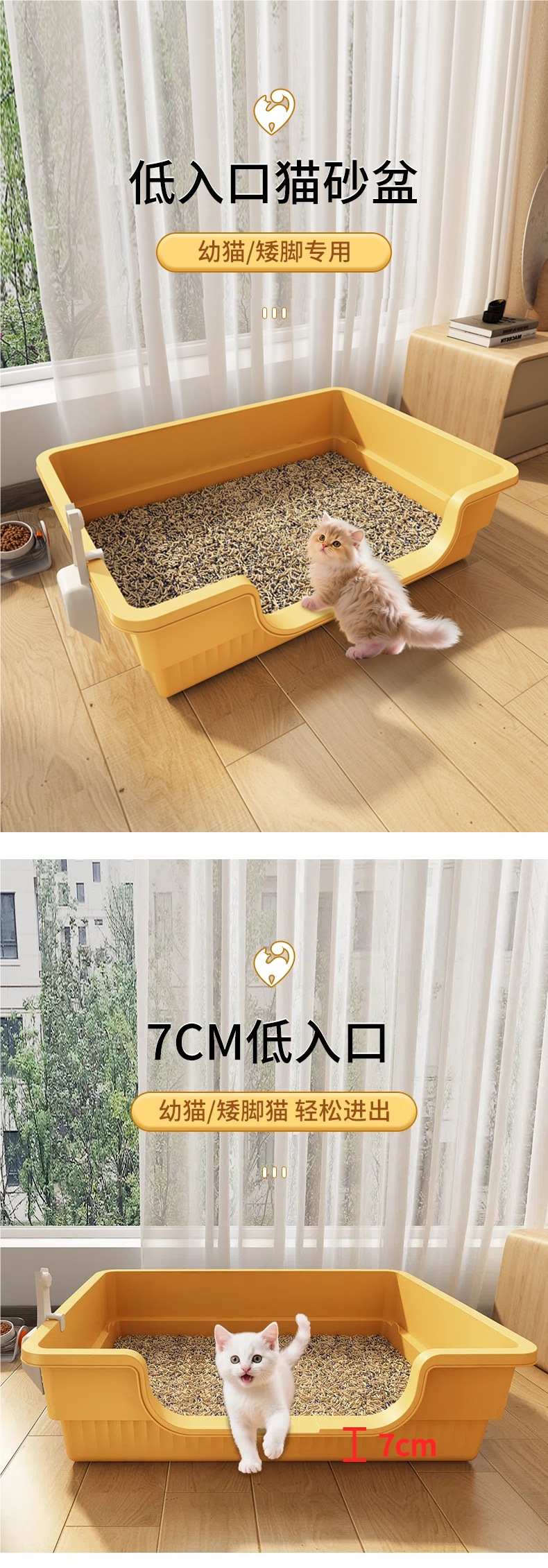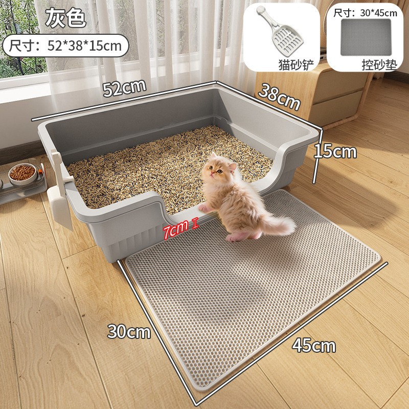 고양이 쓰레기통, 낮은 입구, 새끼 고양이용 개방형 대형, 물 튀김 방지, 낮은 문턱, 얕은 입구, 작은 발, 작은 고양이 변기
