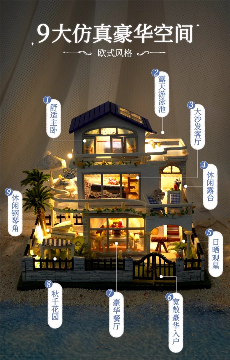 DIY 캐빈 수제 작은 집 빌라 세계 미니어처 장난감 생일 선물