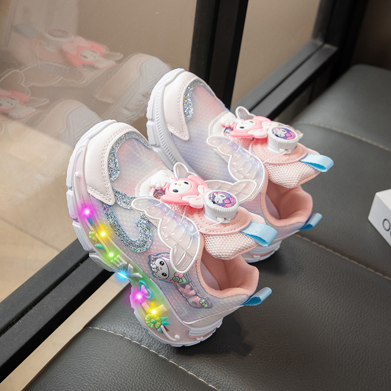 2025 새로운 가을 소녀 메쉬 캐주얼 신발 어린이 빛나는 버튼 스포츠 신발 소녀 캠퍼스 아빠 신발 유행스토어 가기