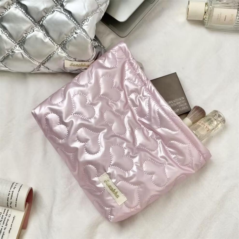 한국식 퀼팅 러브 클러치 백 화장품 가방 스킨 케어 제품 동전 지갑 라이너 가방 여성용 다기능 수납 가방