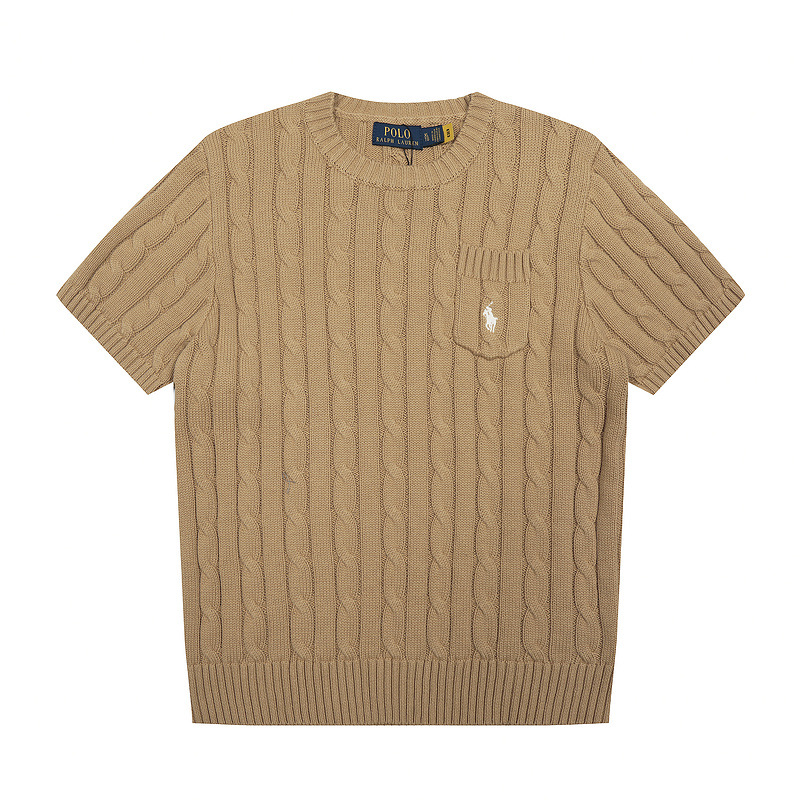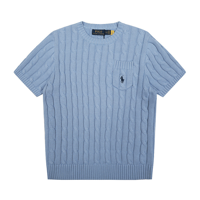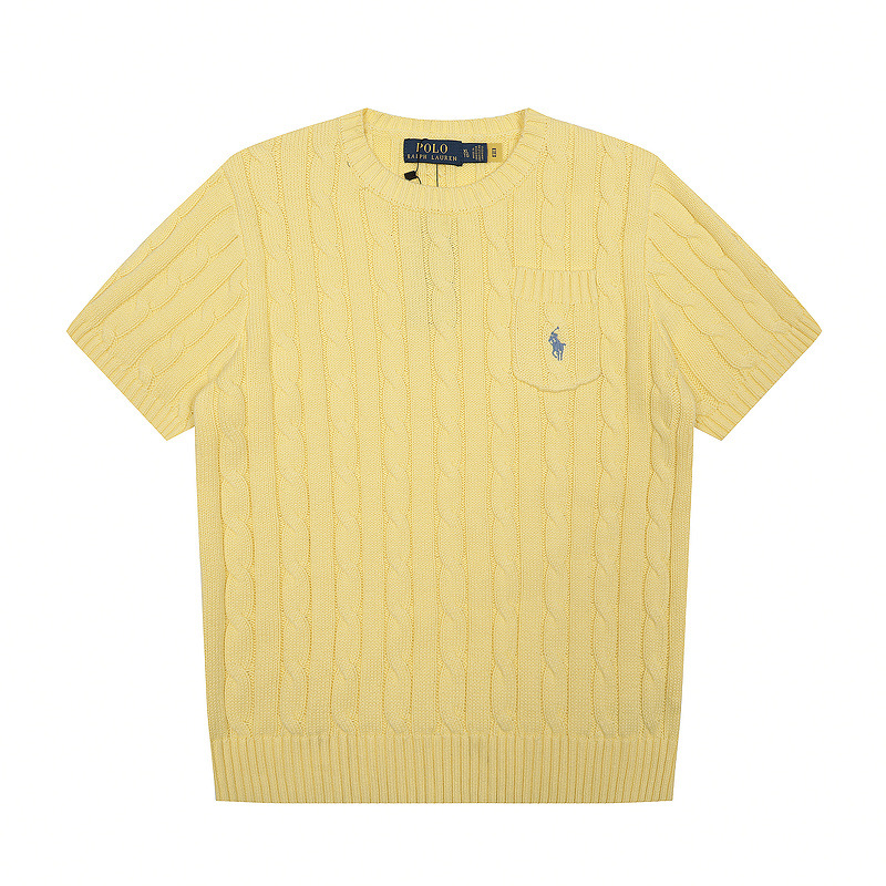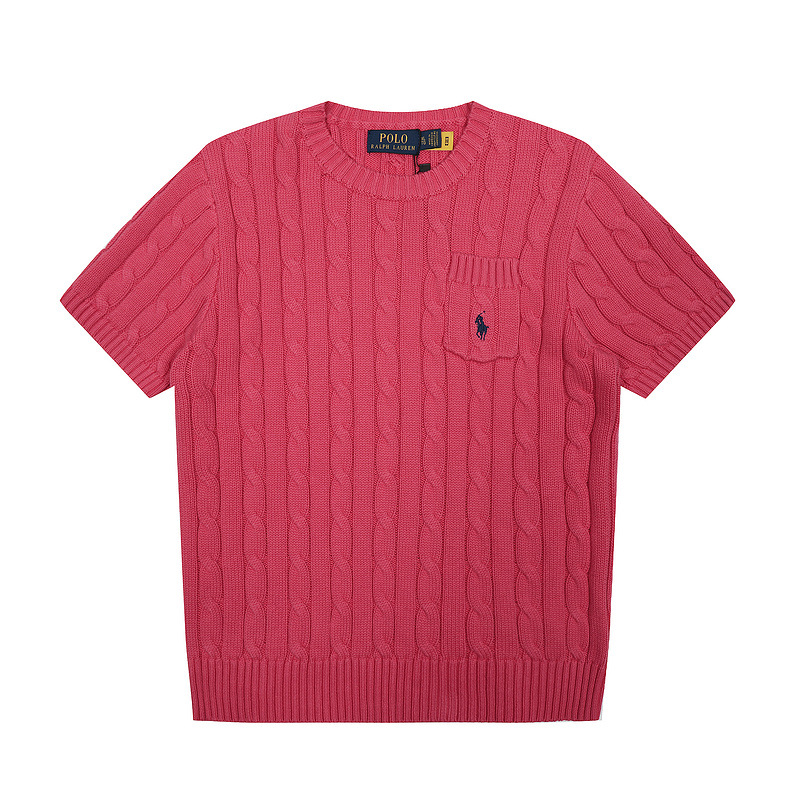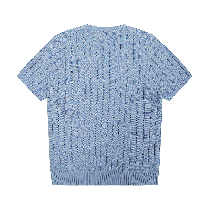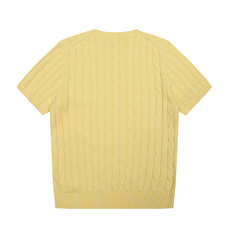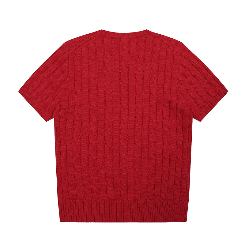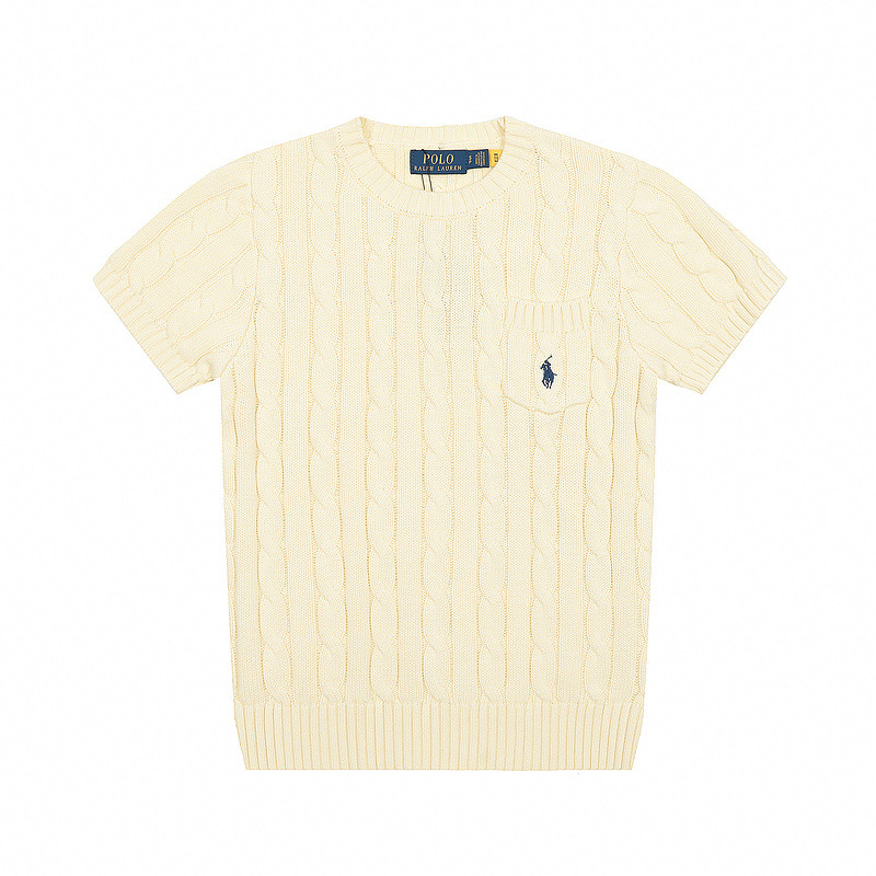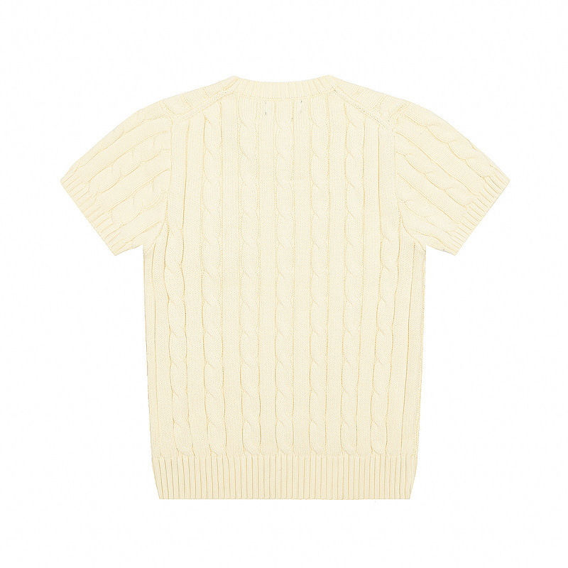 스캔 코드 버전 러프 스웨터 봄 여름 신작 라운드 넥 포켓 스타일 솔리드 컬러 포니 자수 로고 여성 반팔스토어 가기