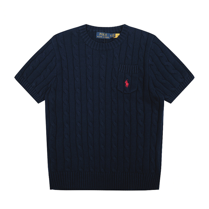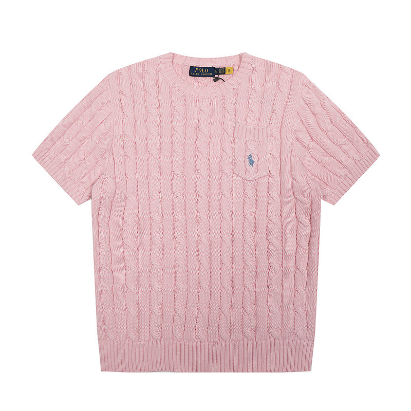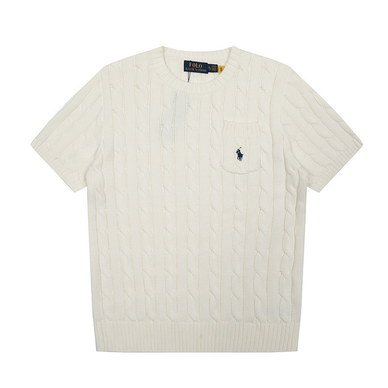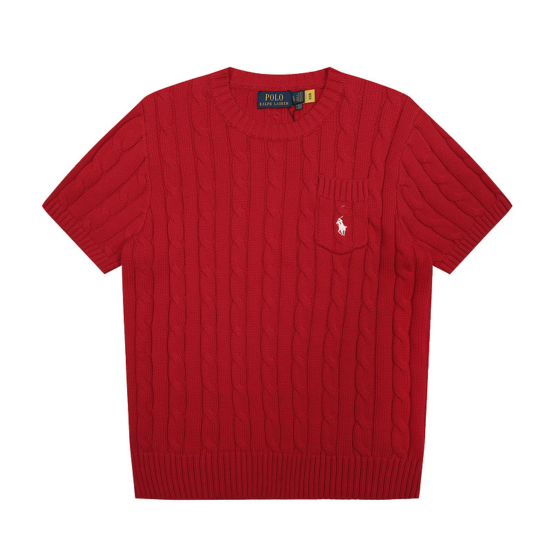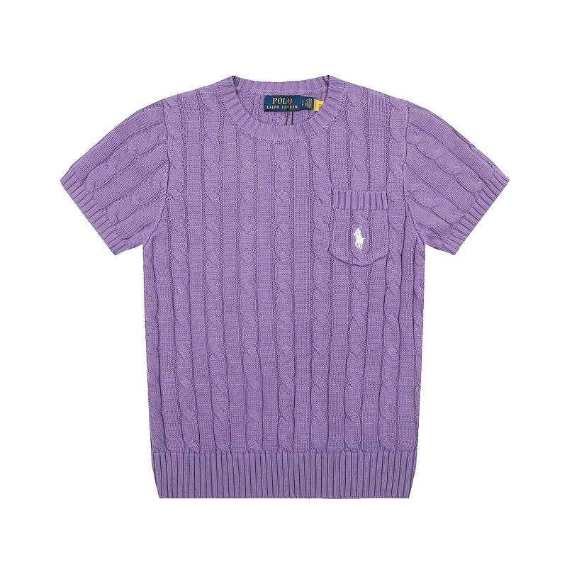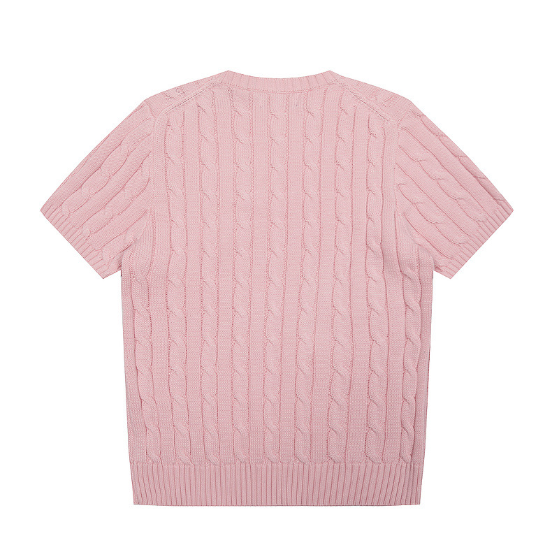 스캔 코드 버전 러프 스웨터 봄 여름 신작 라운드 넥 포켓 스타일 솔리드 컬러 포니 자수 로고 여성 반팔