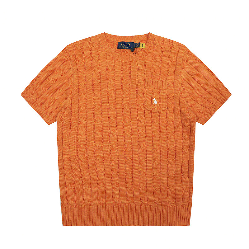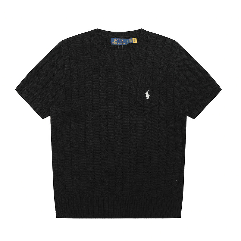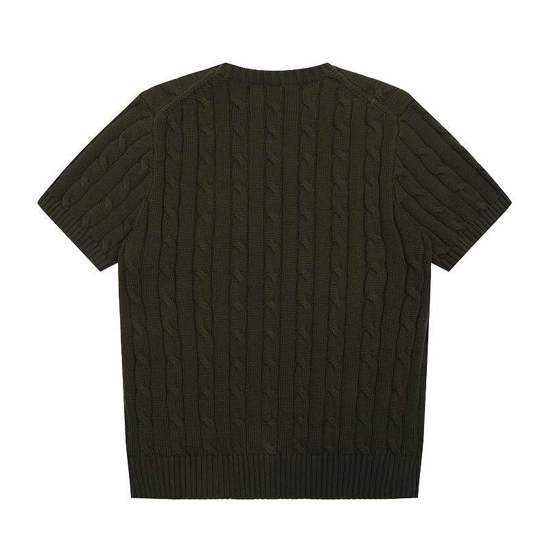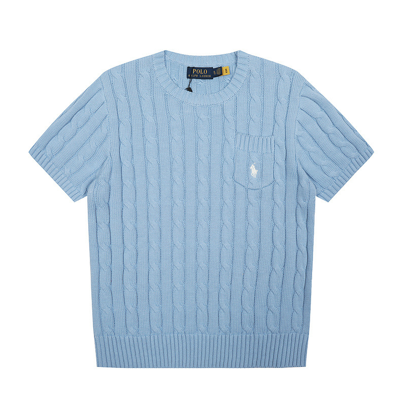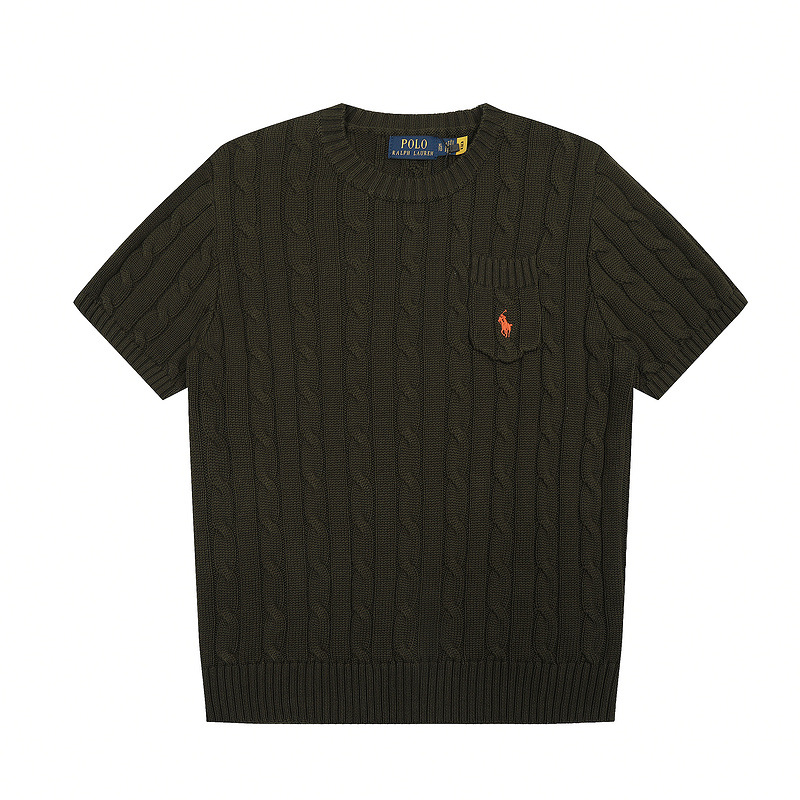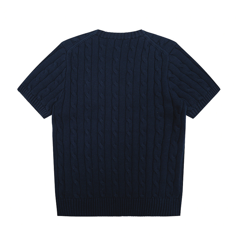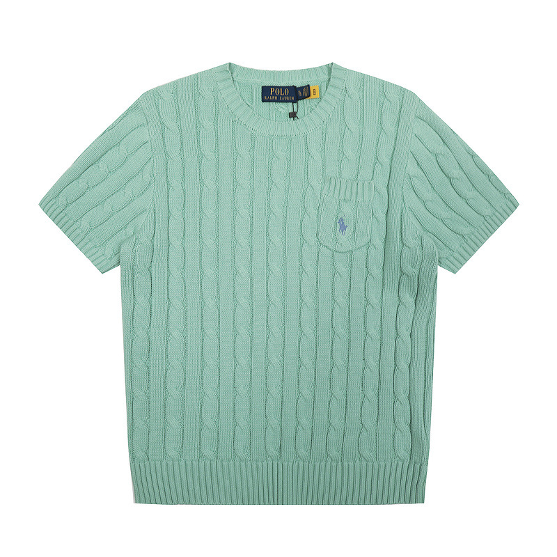 스캔 코드 버전 러프 스웨터 봄 여름 신작 라운드 넥 포켓 스타일 솔리드 컬러 포니 자수 로고 여성 반팔