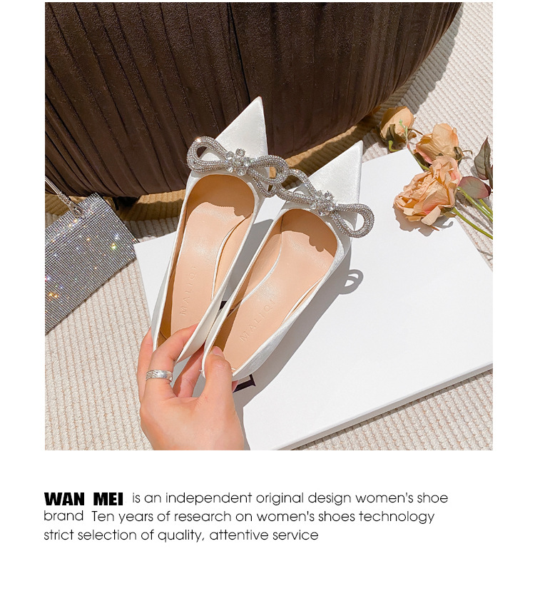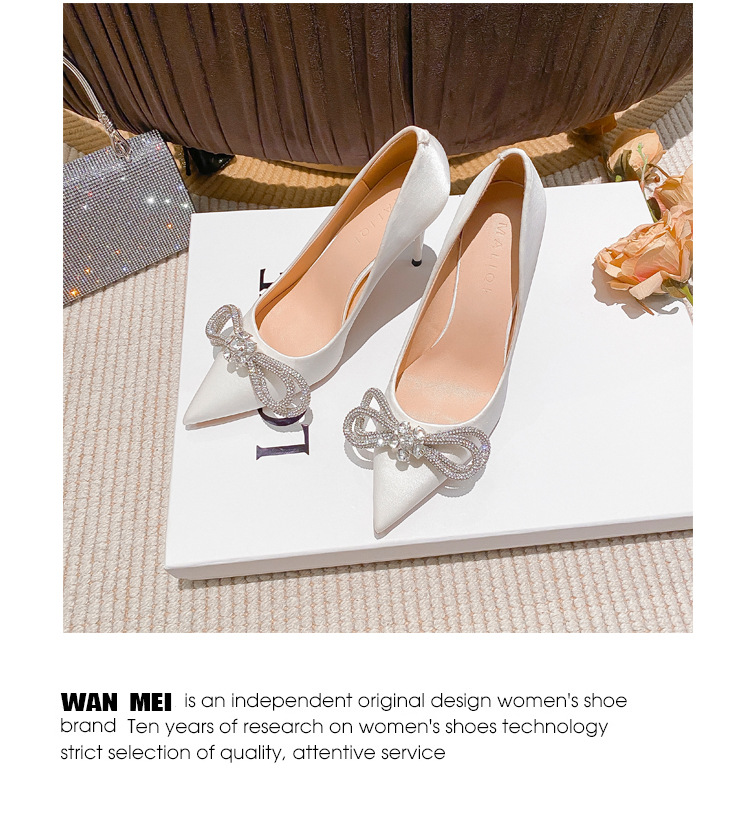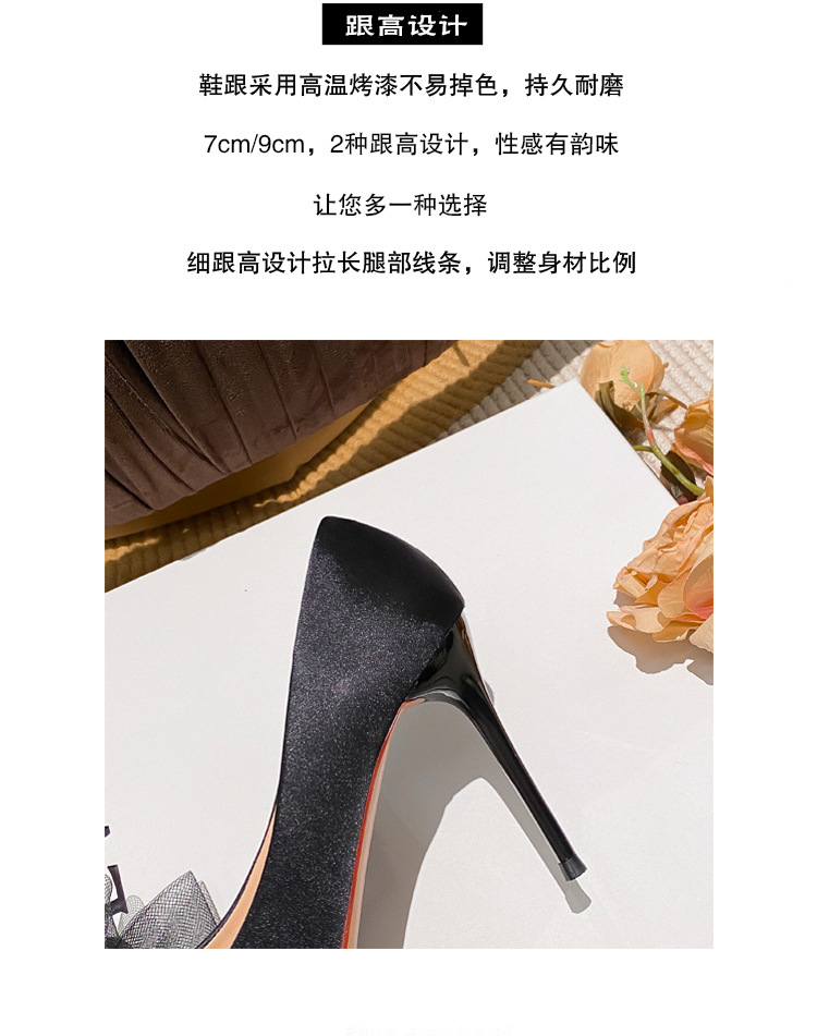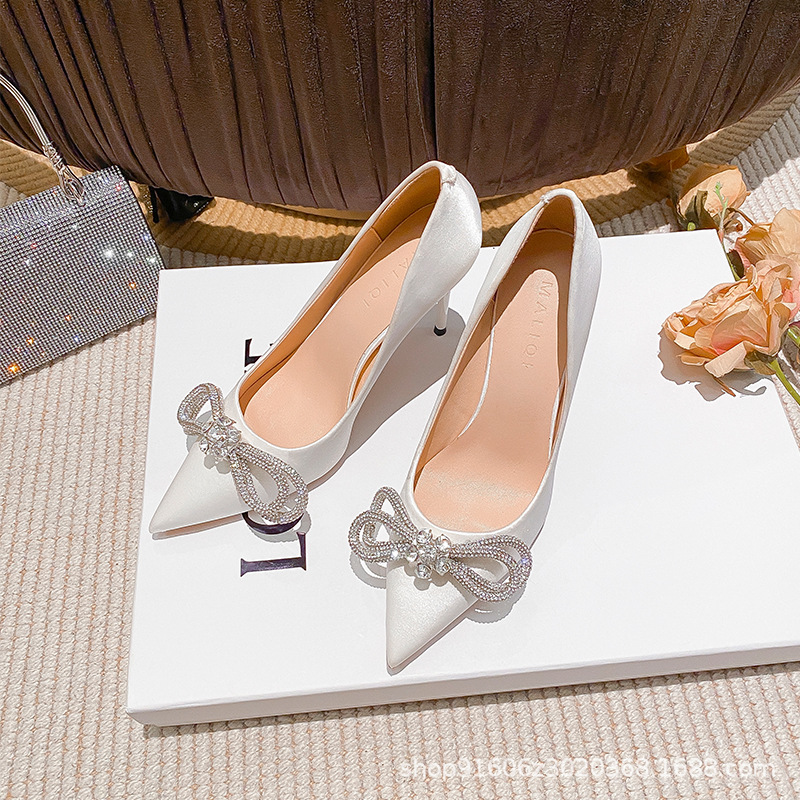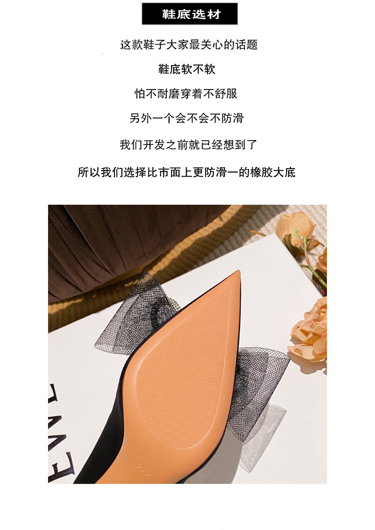 리본 블랙 아름다운 뾰족한 하이힐 여성용 스틸레토 하이힐 라인스톤 피곤하지 않은 통근 신발 2025 봄 신작스토어 가기