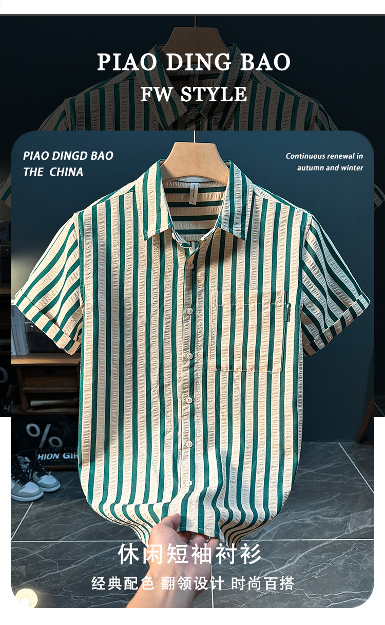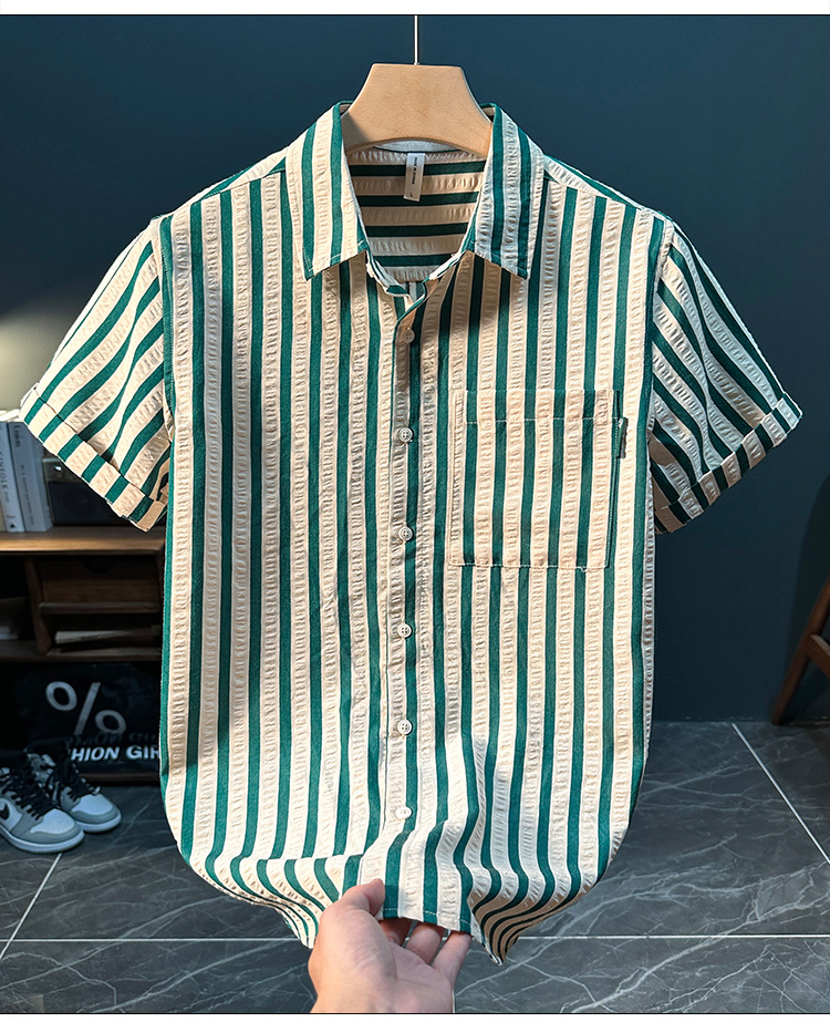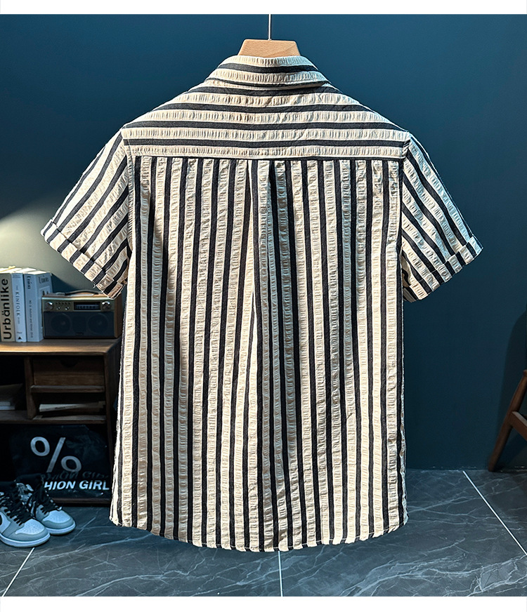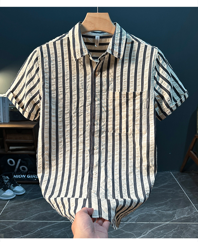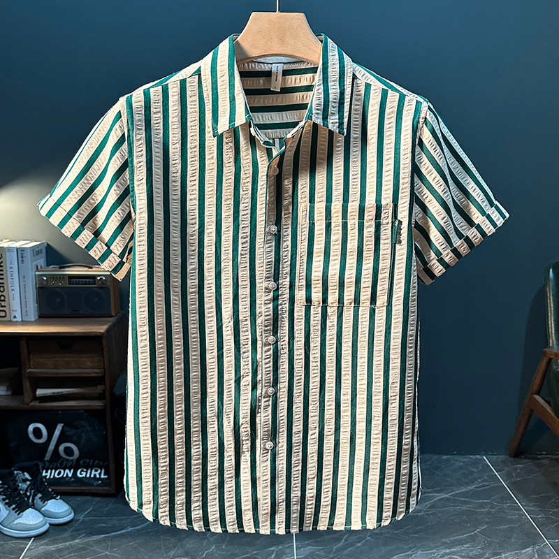 스트라이프 반팔 셔츠 남성용 여름 얇은 편안하고 통기성 좋은 셔츠 트렌디하고 다재다능하고 멋스러운 캐주얼 루즈핏 상의
