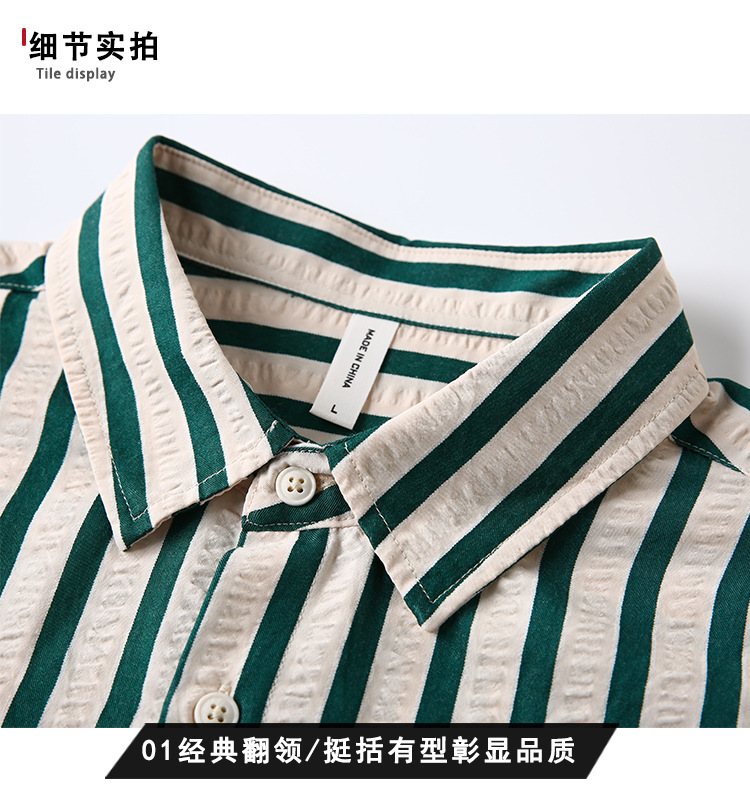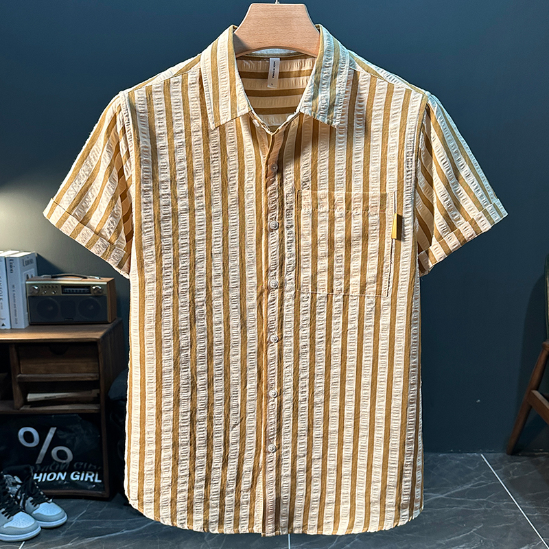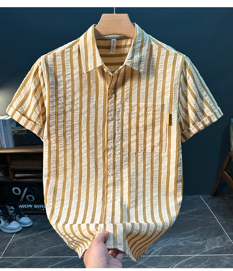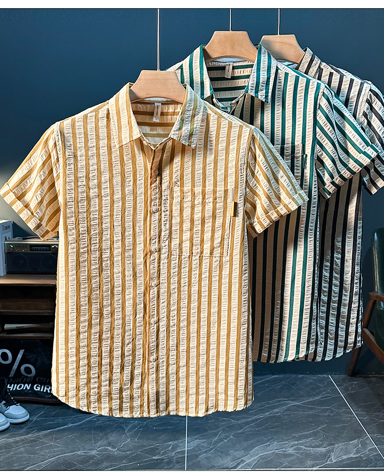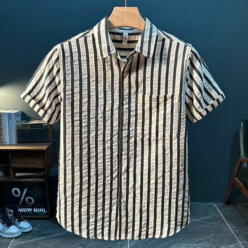 스트라이프 반팔 셔츠 남성용 여름 얇은 편안하고 통기성 좋은 셔츠 트렌디하고 다재다능하고 멋스러운 캐주얼 루즈핏 상의