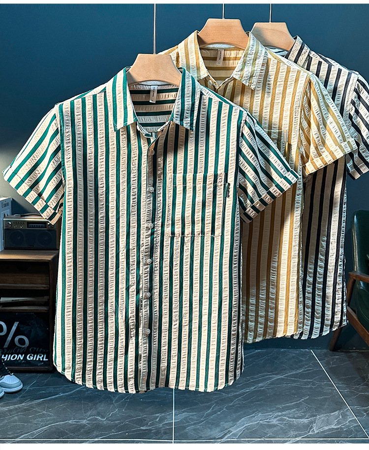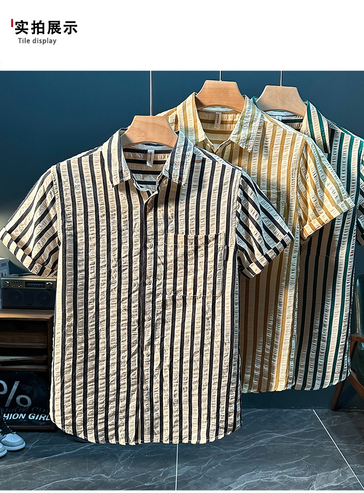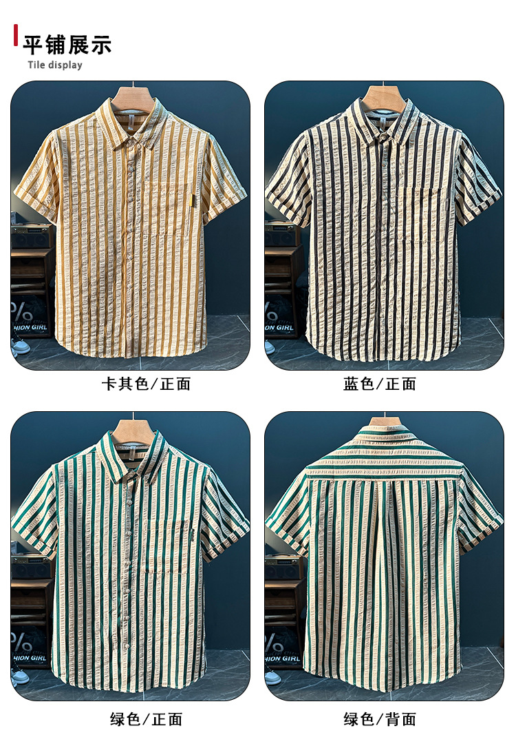스트라이프 반팔 셔츠 남성용 여름 얇은 편안하고 통기성 좋은 셔츠 트렌디하고 다재다능하고 멋스러운 캐주얼 루즈핏 상의스토어 가기