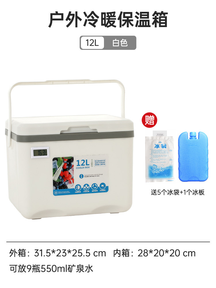 • 오래 지속되는 보온성을 갖춘 흰색 12L 온도계 모델 [얼음주머니 5개 + 얼음판 1개 무료]