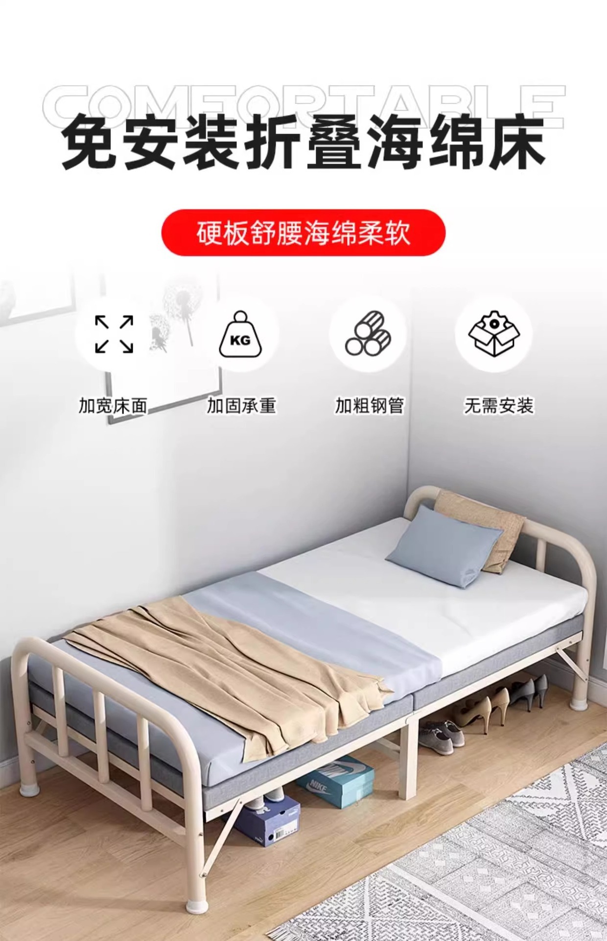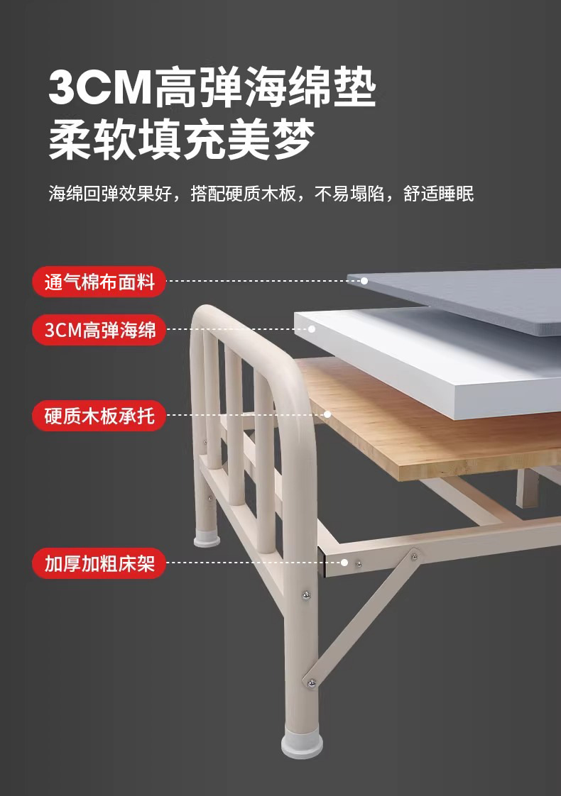 접이식 스펀지 침대 가정용 성인 동반자 강화 간이 철제 침대 기숙사 사무실 점심 시간 낮잠 싱글 침대