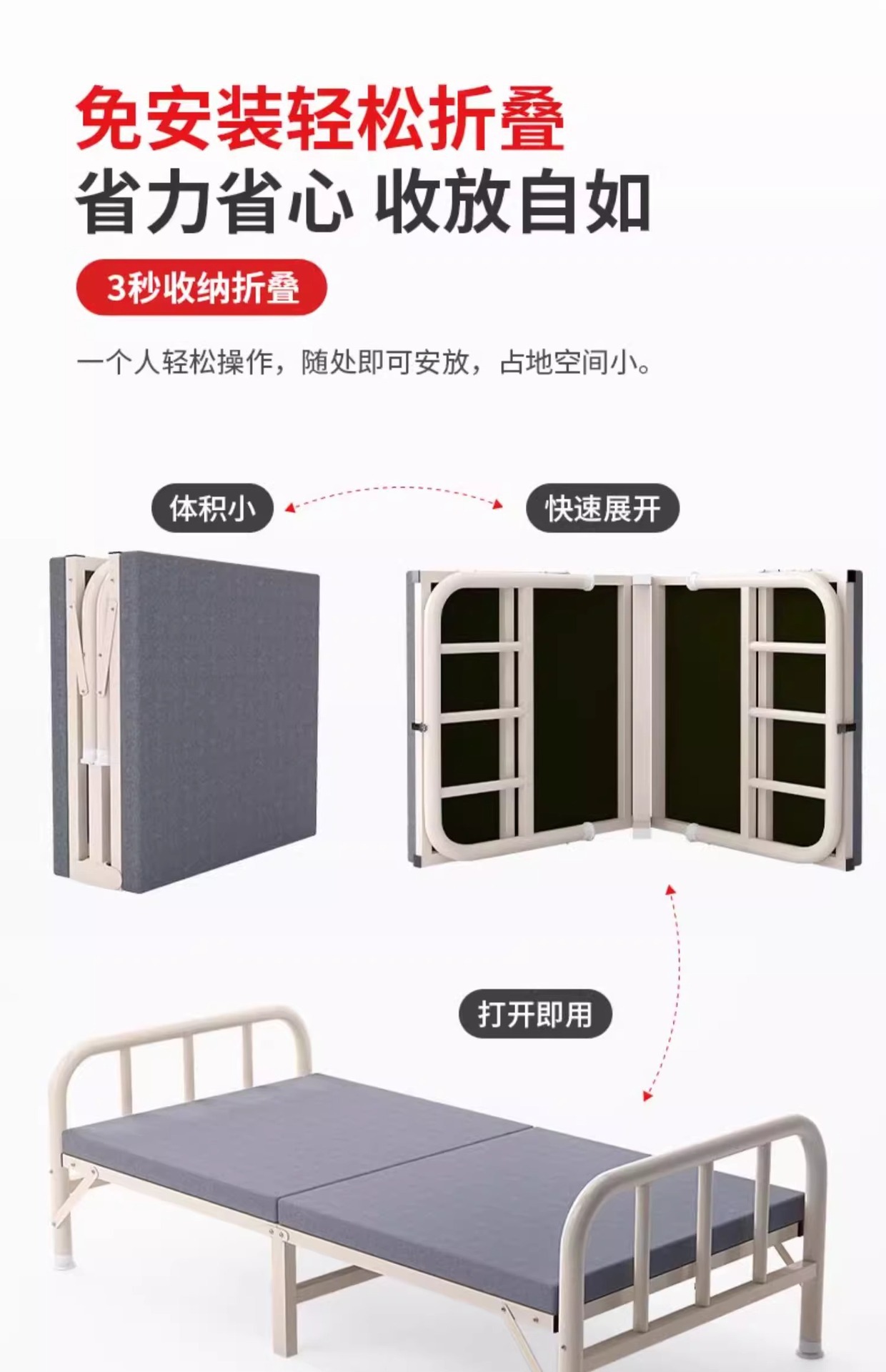 접이식 스펀지 침대 가정용 성인 동반자 강화 간이 철제 침대 기숙사 사무실 점심 시간 낮잠 싱글 침대스토어 가기