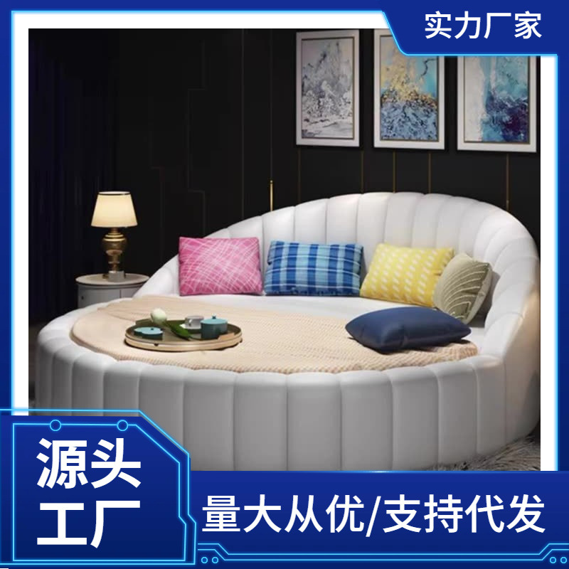 라운드 침대, 더블 침대, 웨딩 침대, 모던 심플 공주 침대, 라운드 침대, 유럽 스타일 커플 가죽 아트 침대, 테마 호텔 소프트 침대