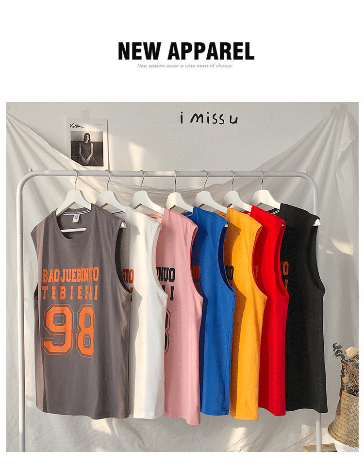 2025 조끼 남성용 민소매 티셔츠 베이스 한국식 루즈 조끼 여름 스포츠 농구 언더 셔츠 트렌디 브랜드 인스토어 가기