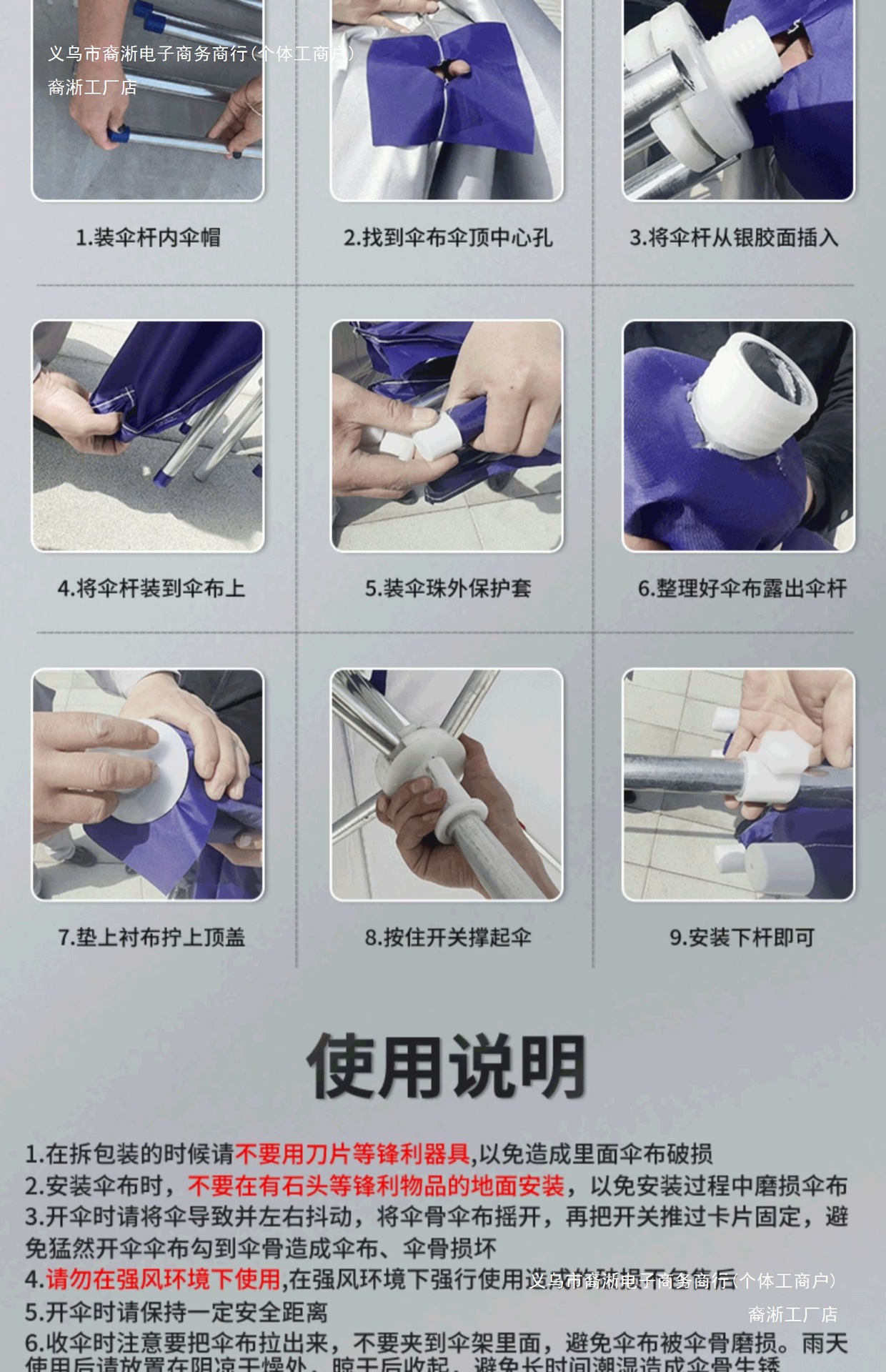 • [블루] 경사우산 3X 3m 두꺼운 6갈비 + 베이스