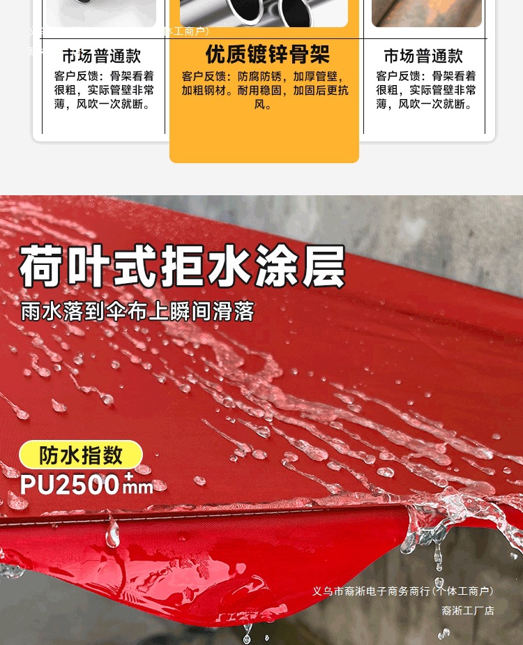 • [레드] 경사우산 2.5X 2m 두꺼운 6갈비 + 베이스