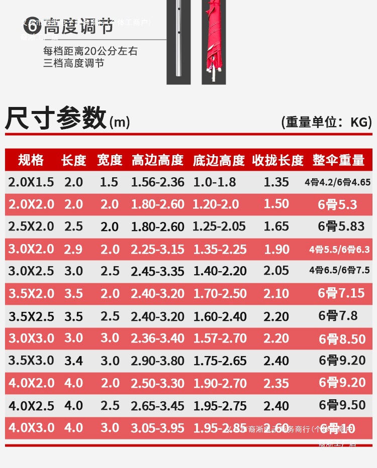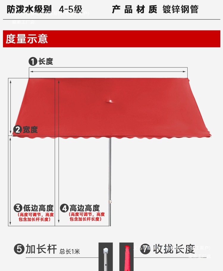 • [레드] 경사우산 3.4X 3m 두꺼운 6갈비 + 베이스