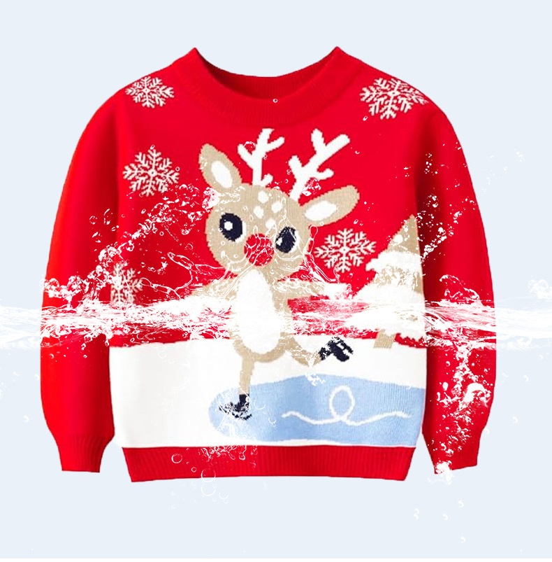 크리스마스 만화 라운드 넥 긴팔 스웨터 어린이 및 소년 풀오버 스웨터를 맞춤형으로 가공 및 생산하는 소스 공장스토어 가기