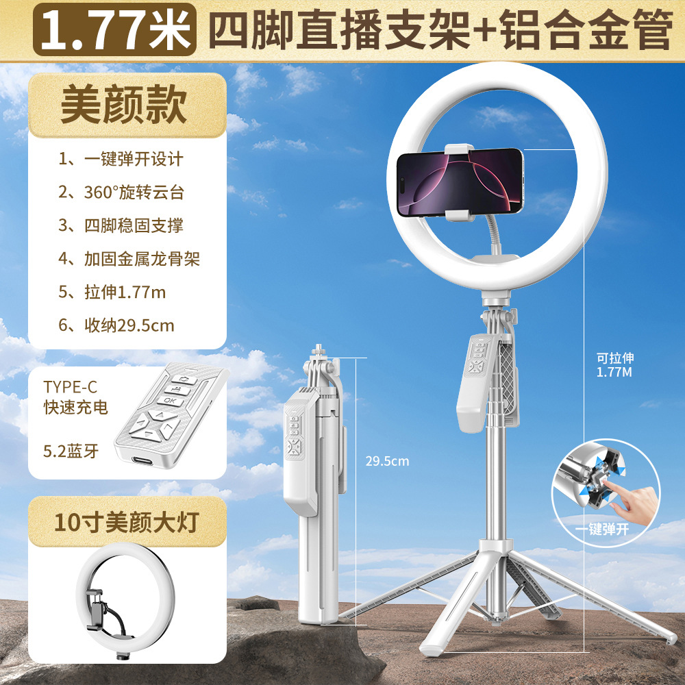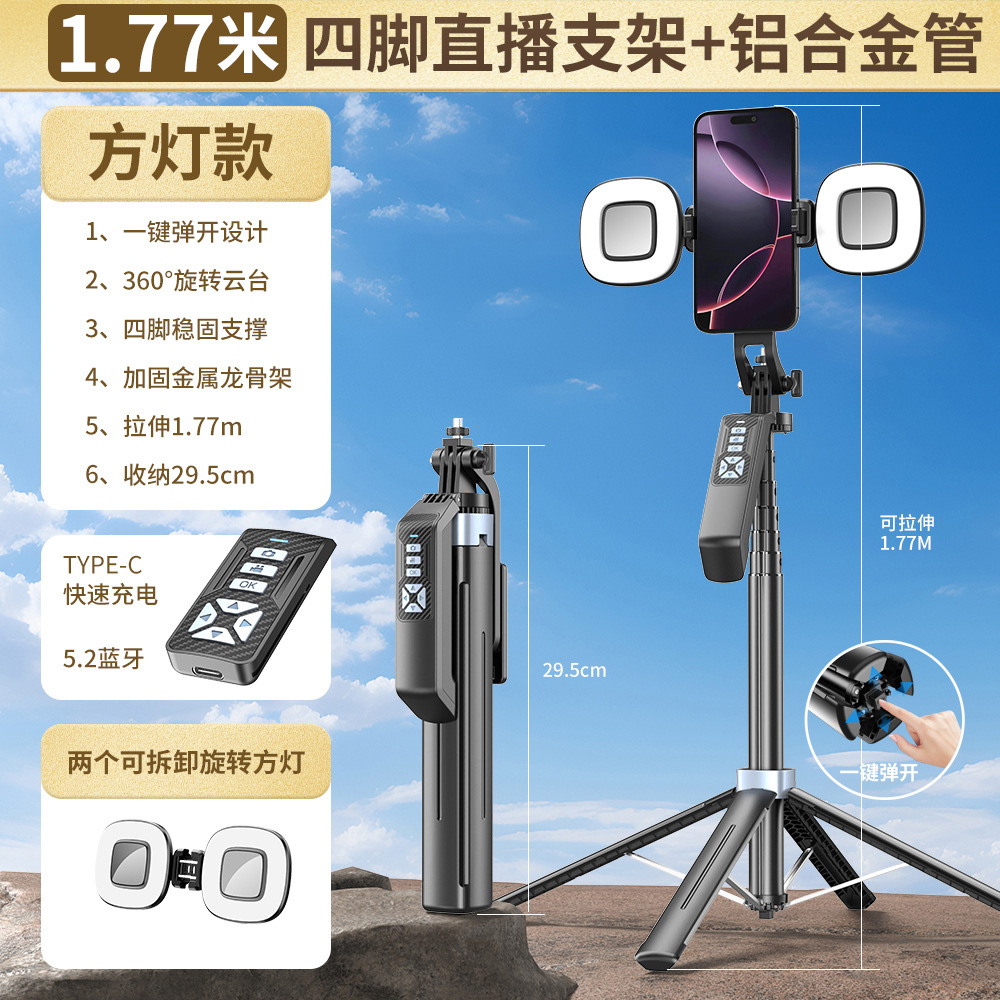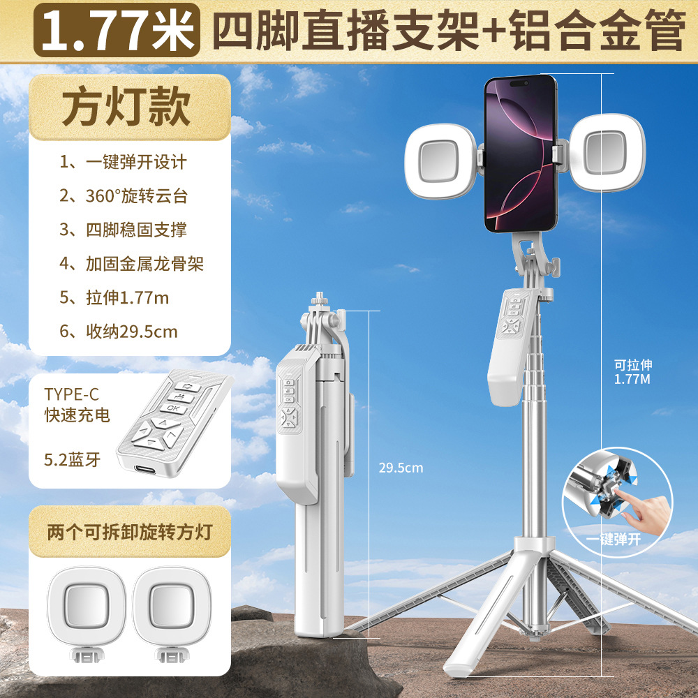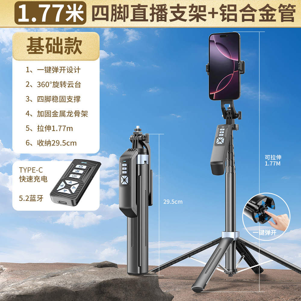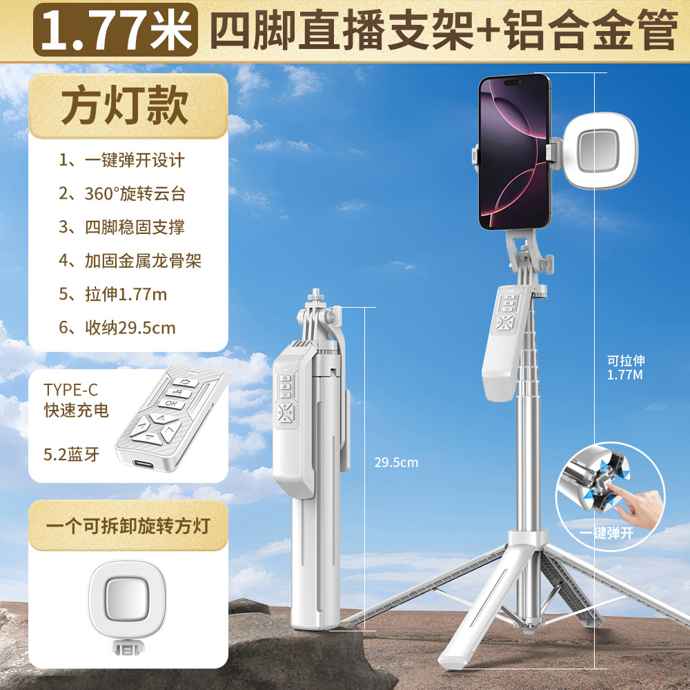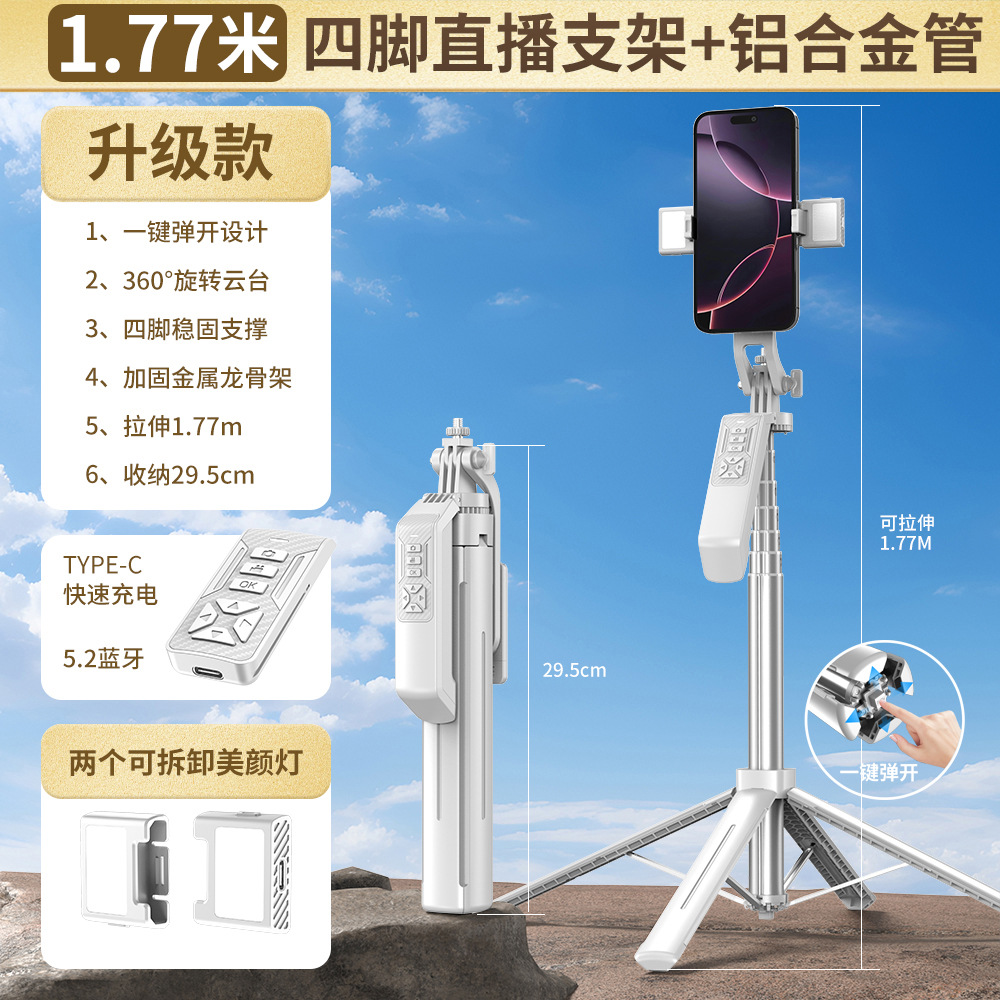 2025 새로운 P19TK 휴대폰 블루투스 셀카봉 360 ° 회전식 휴대용 흔들림 방지 바닥 라이브 방송 4개의 다리 스탠드