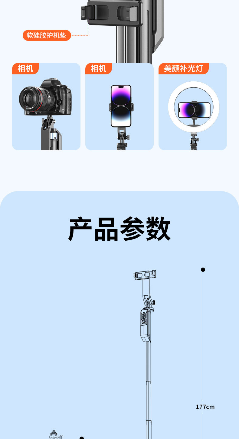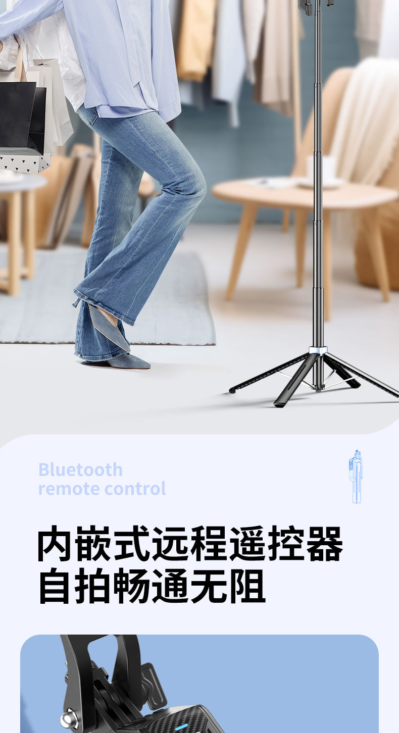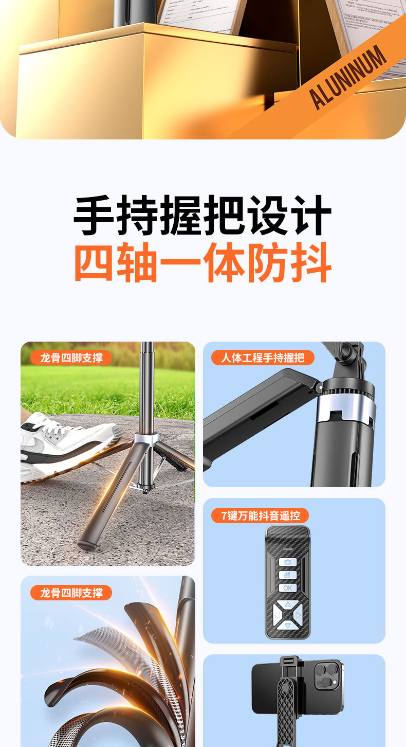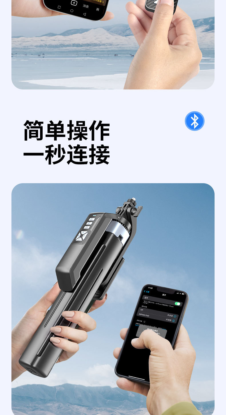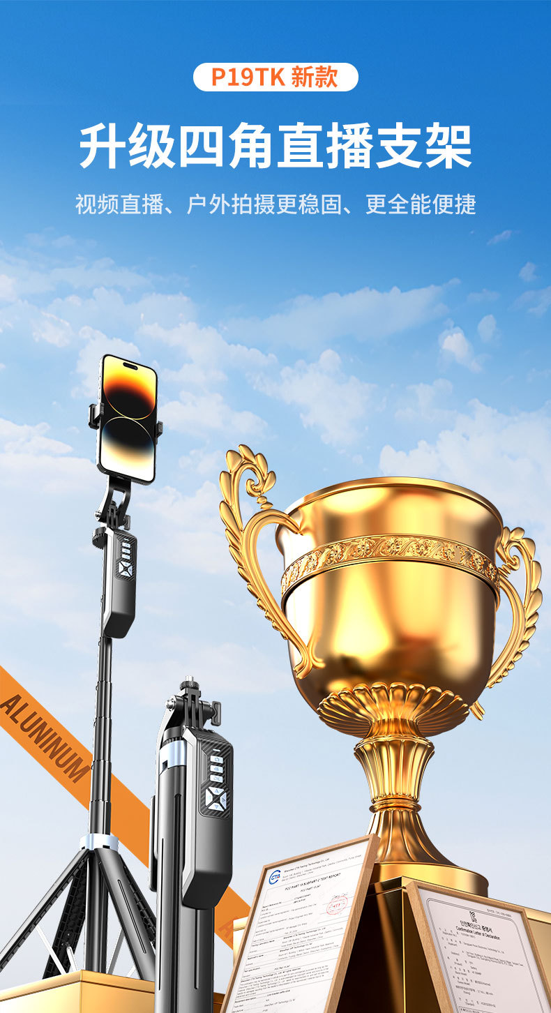 2025 새로운 P19TK 휴대폰 블루투스 셀카봉 360 ° 회전식 휴대용 흔들림 방지 바닥 라이브 방송 4개의 다리 스탠드