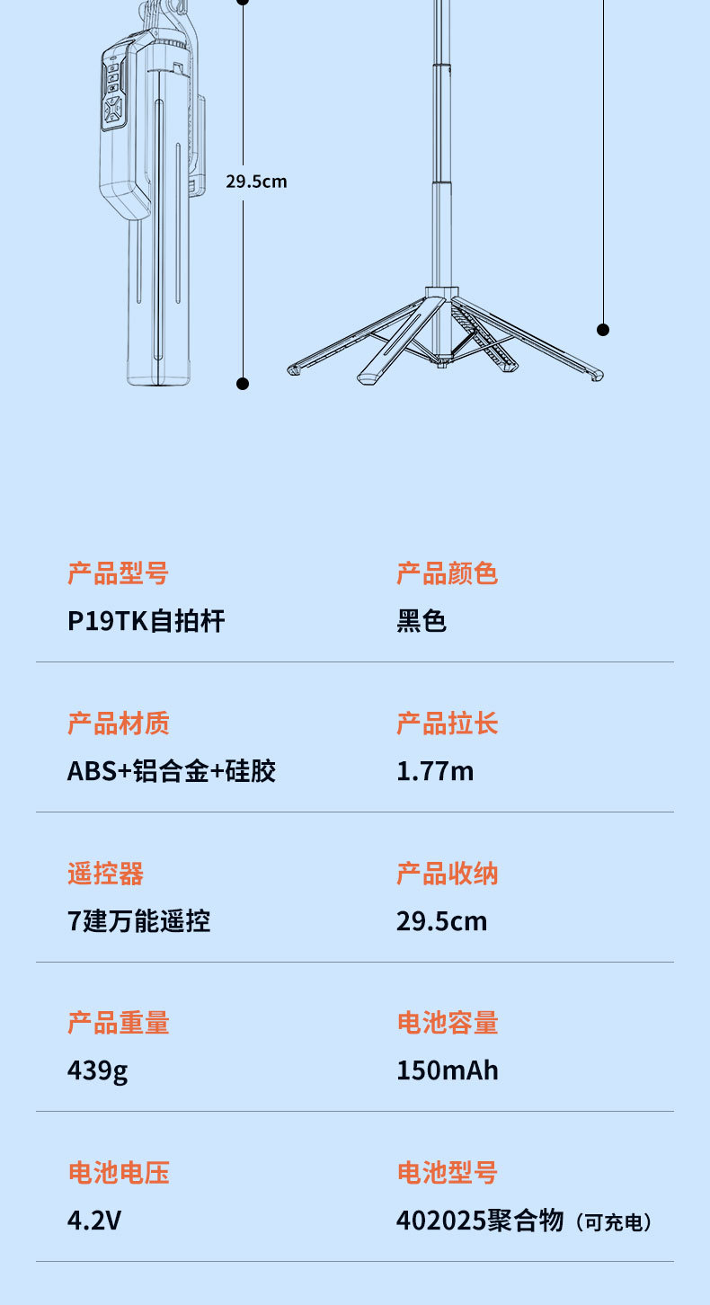 • P19TK 셀카봉 1.77m + 10inch 라이트 블랙