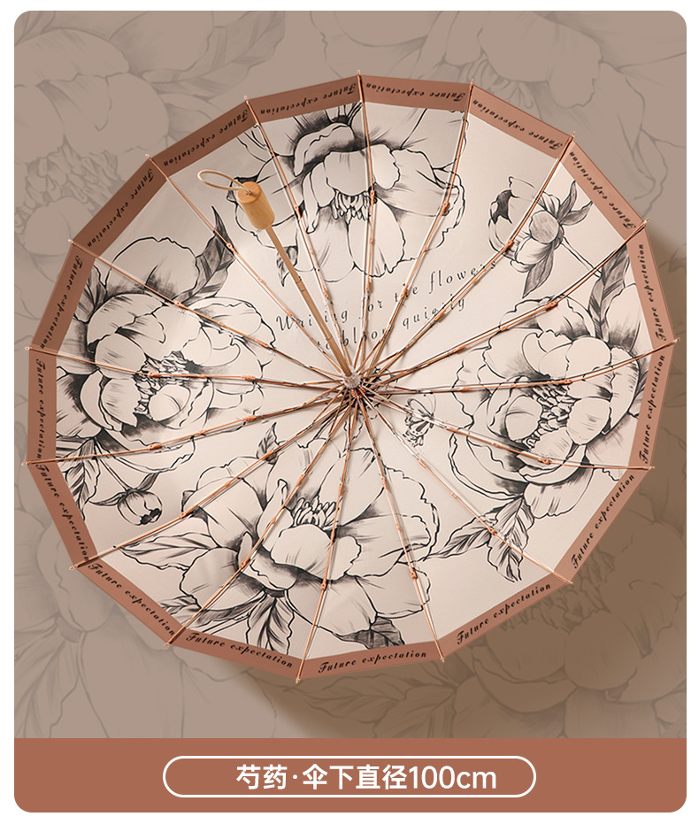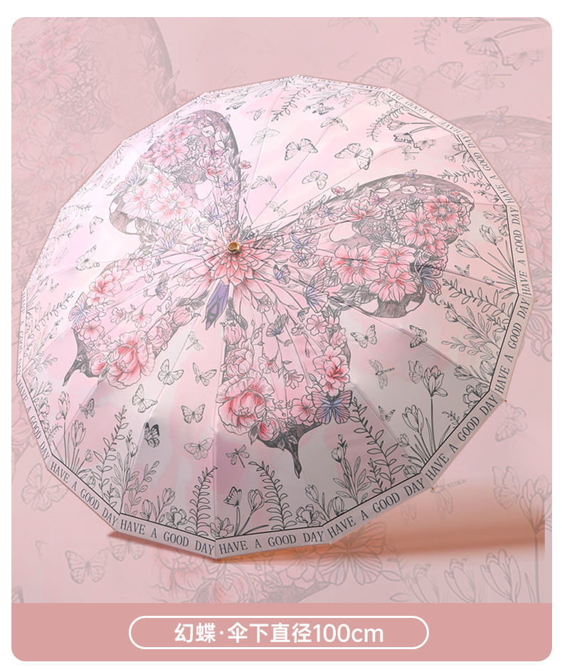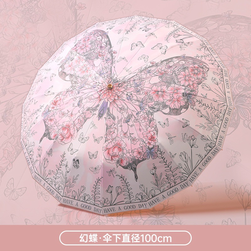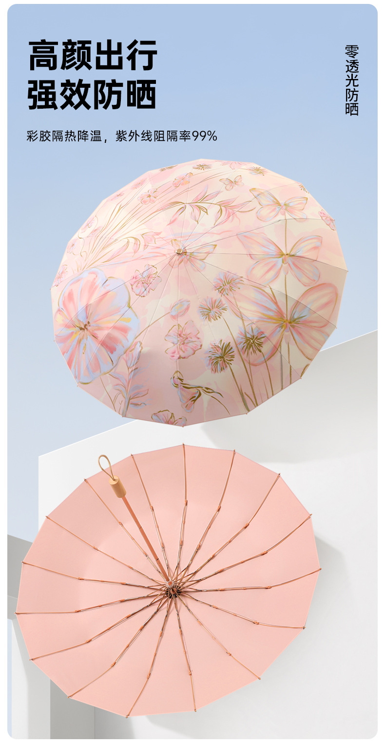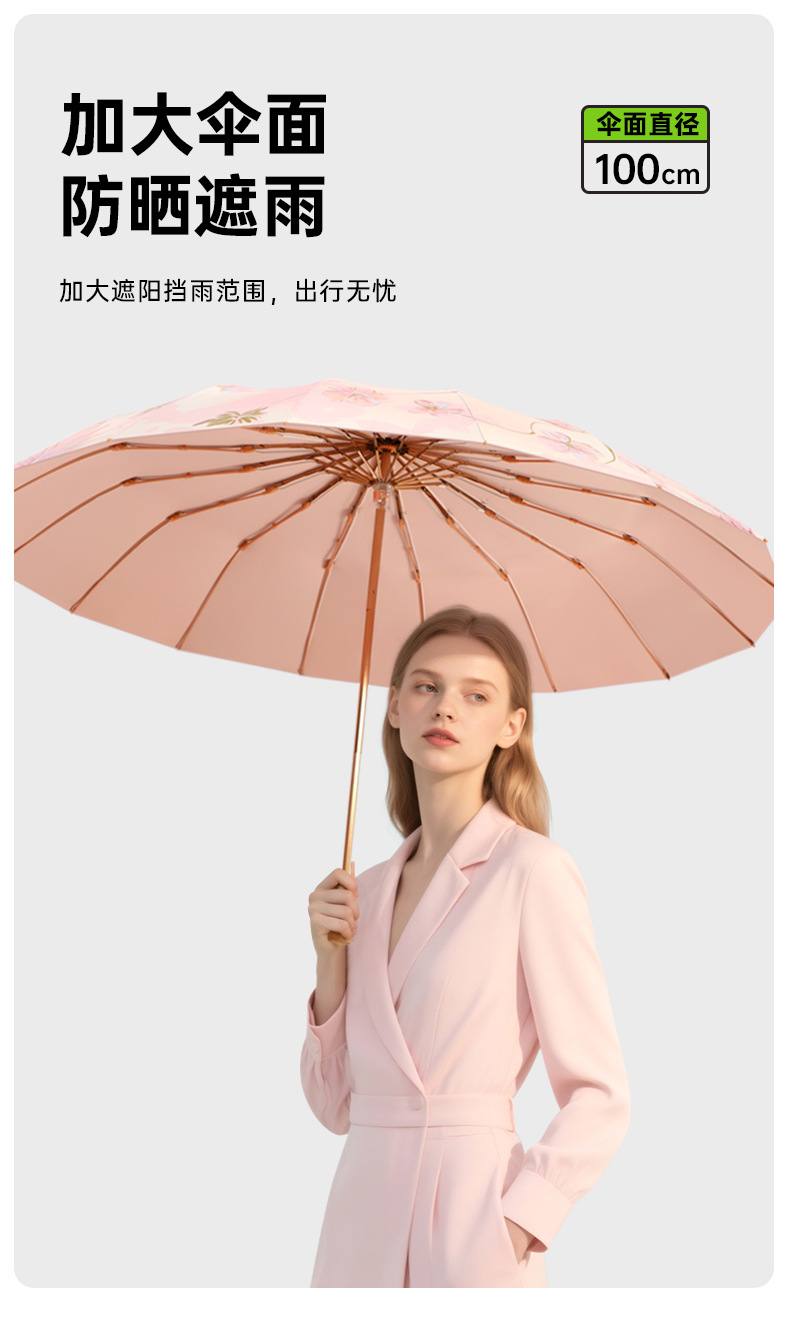 여성을 위한 새로운 중국 스타일 16본 비 또는 빛 양산 및 자외선 차단제 양산 우산, 자외선 차단, 접이식, 강화 및 플러스 사이즈