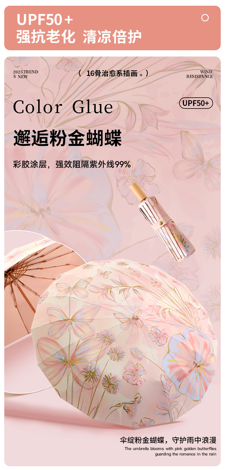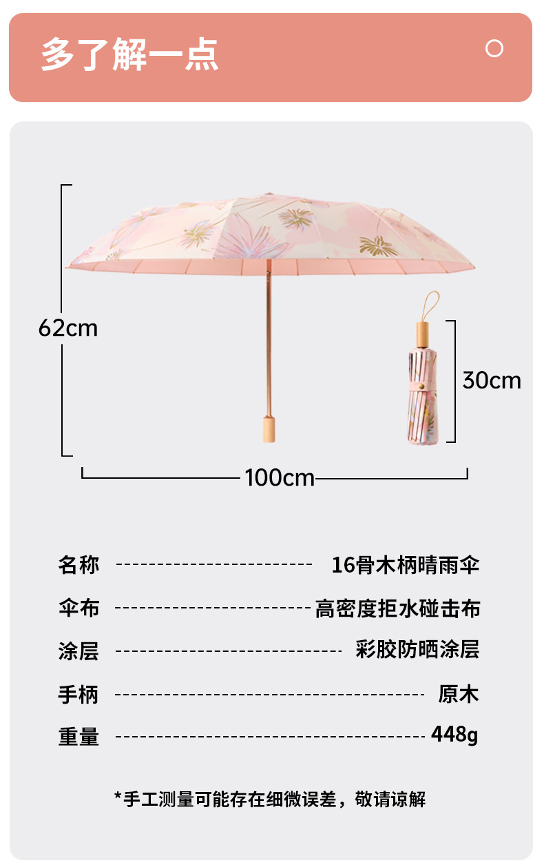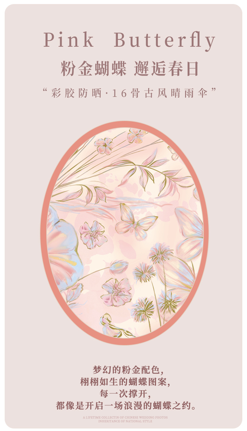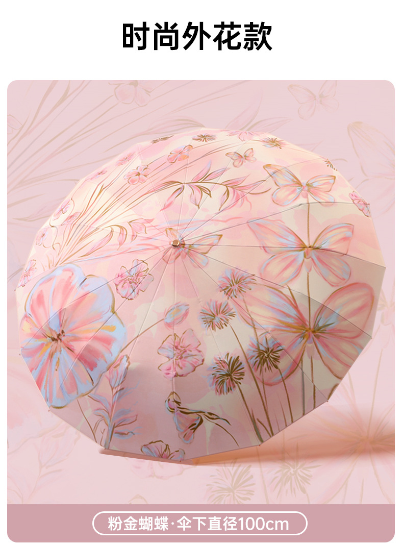 여성을 위한 새로운 중국 스타일 16본 비 또는 빛 양산 및 자외선 차단제 양산 우산, 자외선 차단, 접이식, 강화 및 플러스 사이즈