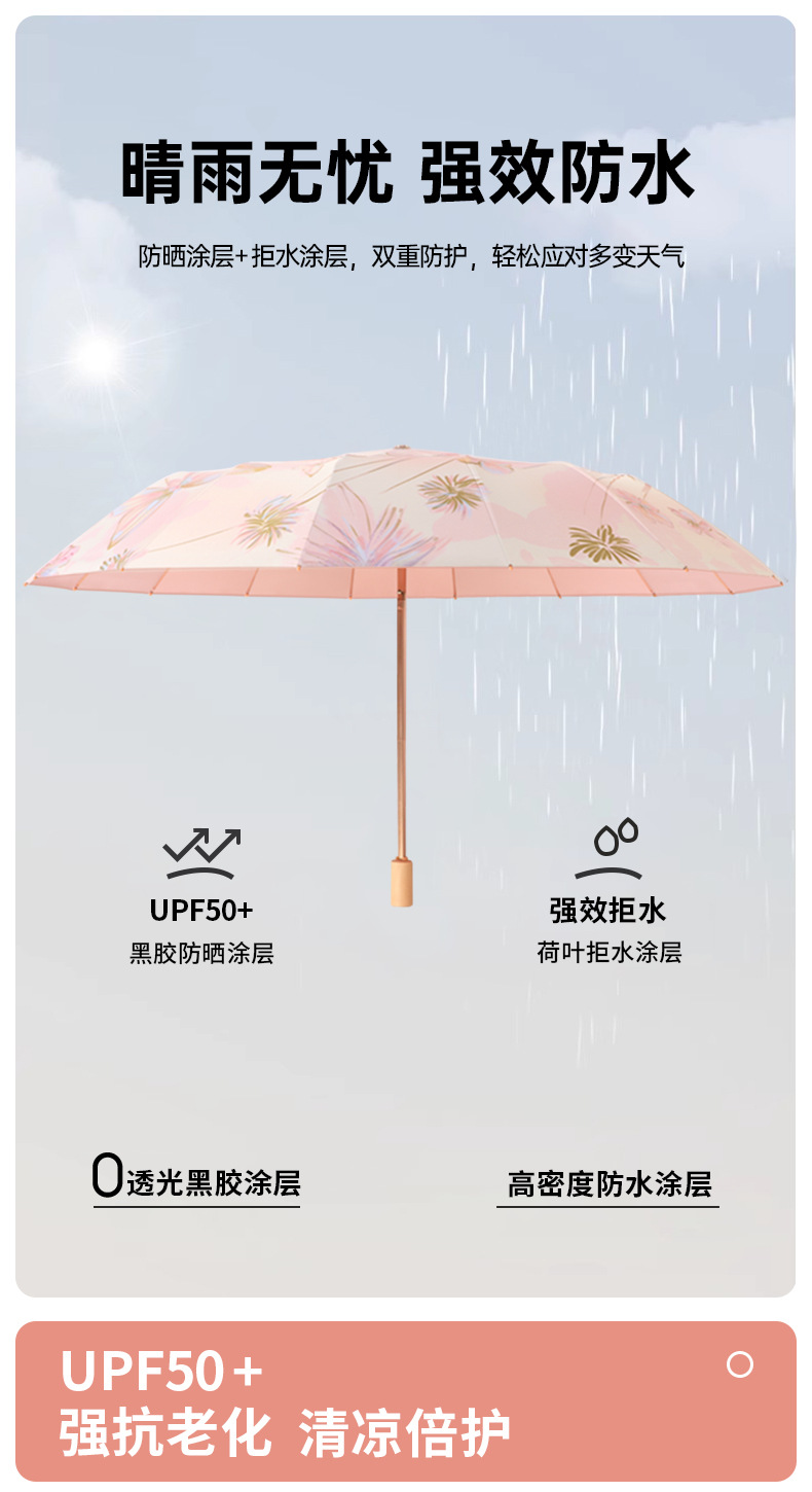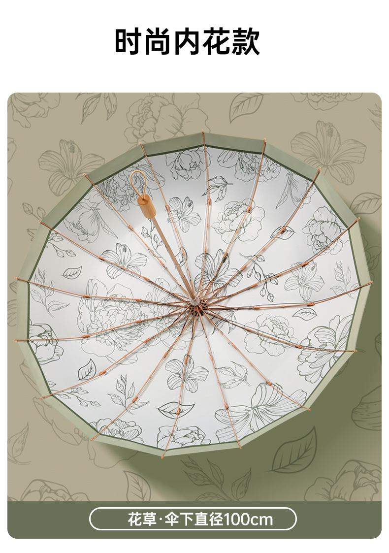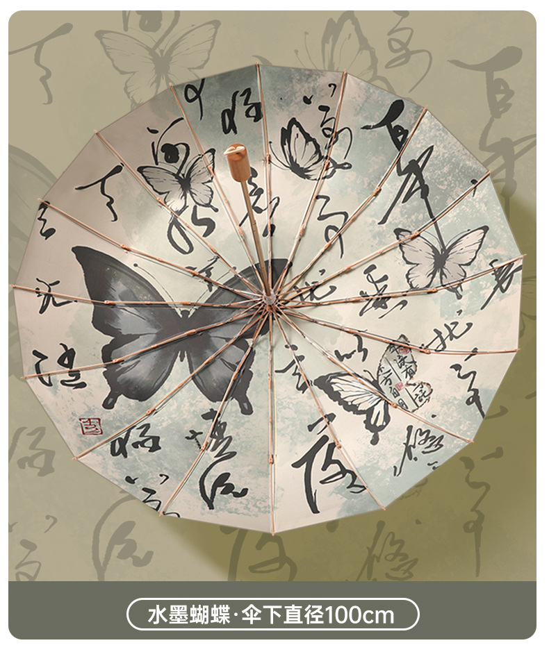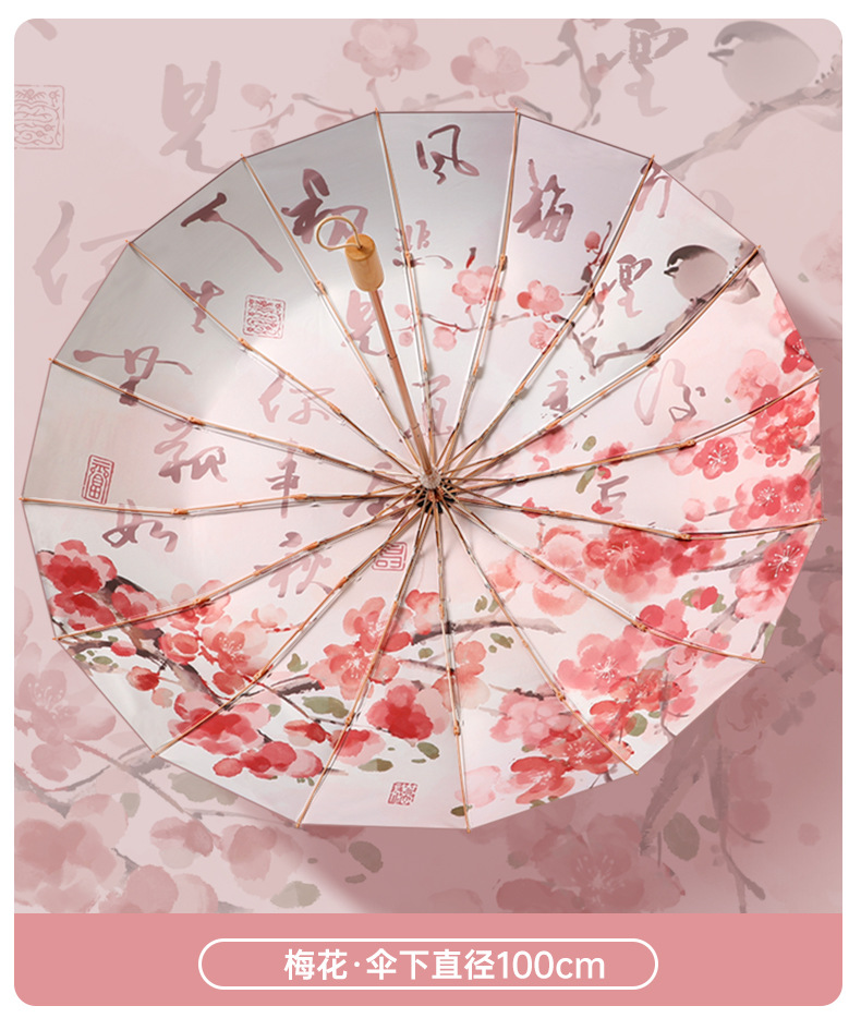 여성을 위한 새로운 중국 스타일 16본 비 또는 빛 양산 및 자외선 차단제 양산 우산, 자외선 차단, 접이식, 강화 및 플러스 사이즈스토어 가기