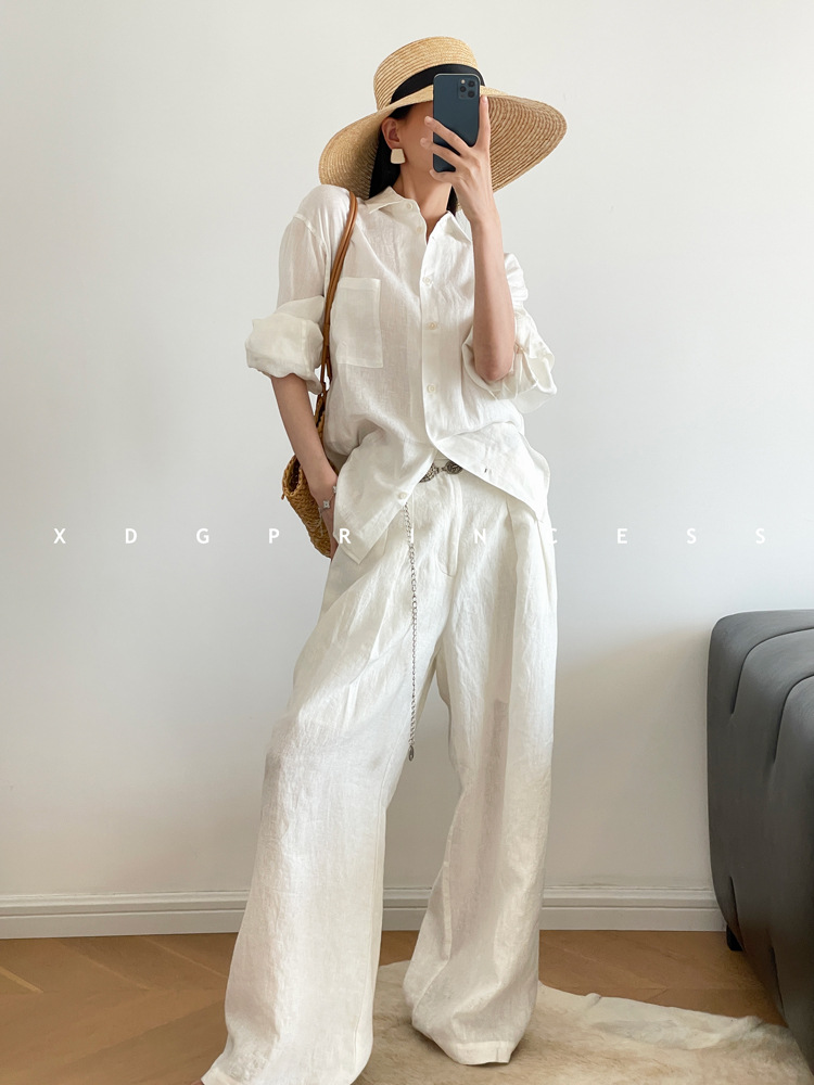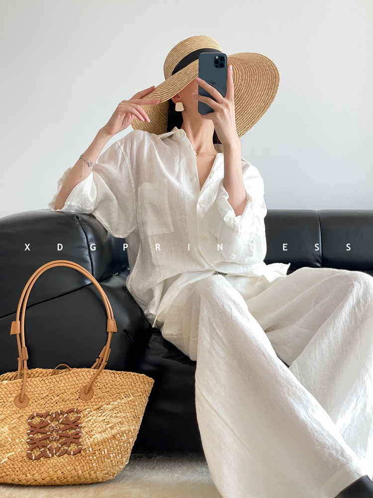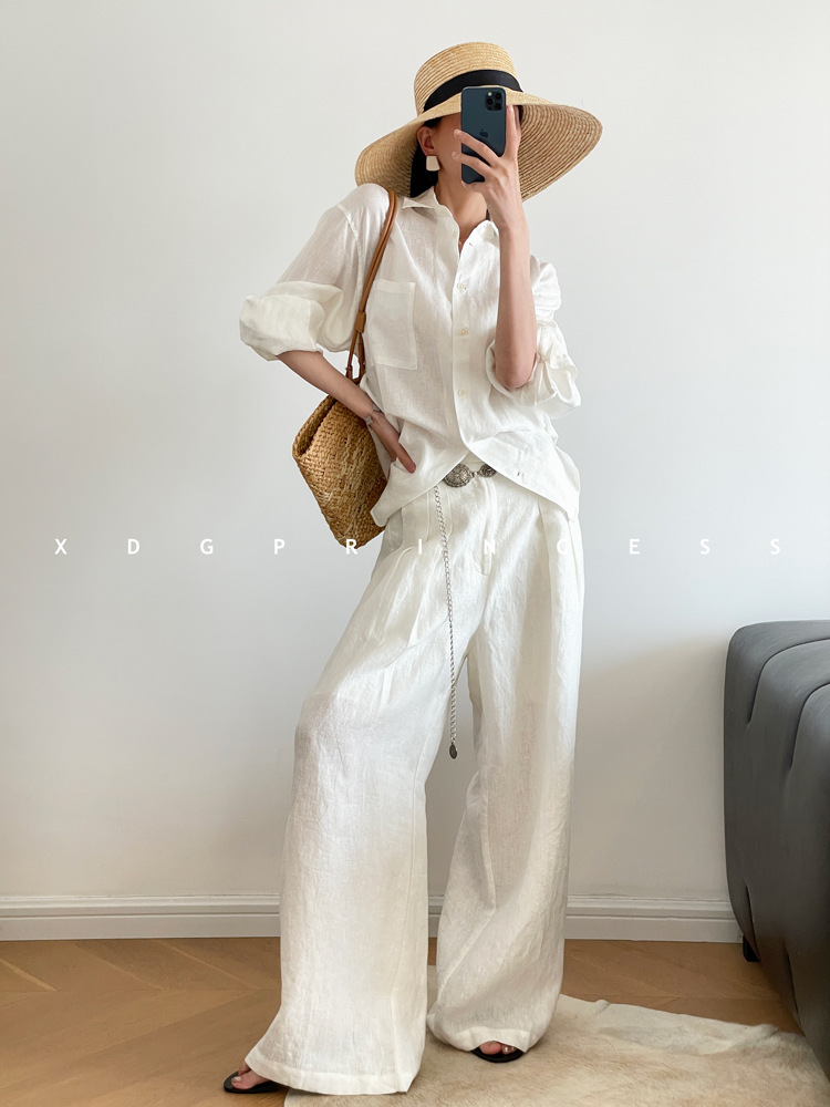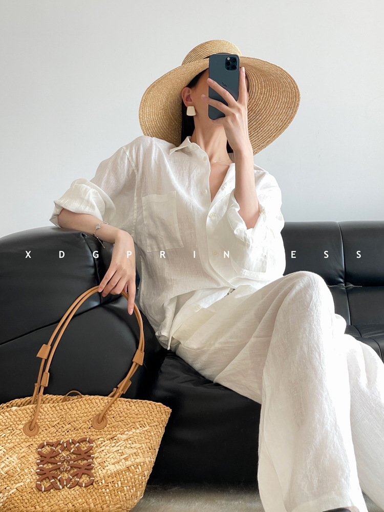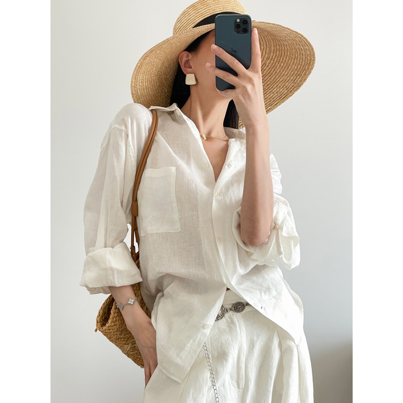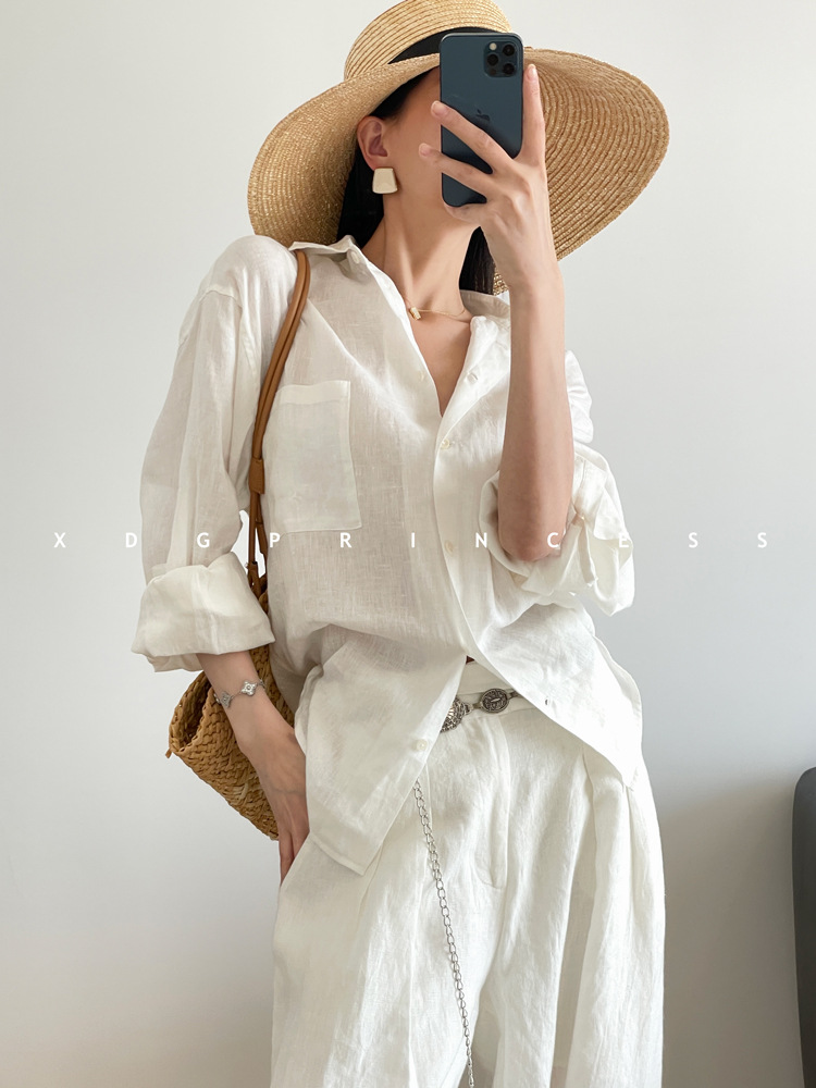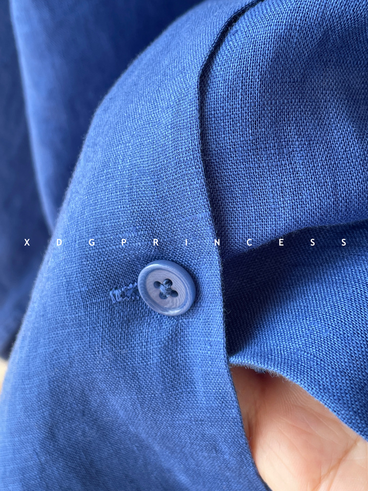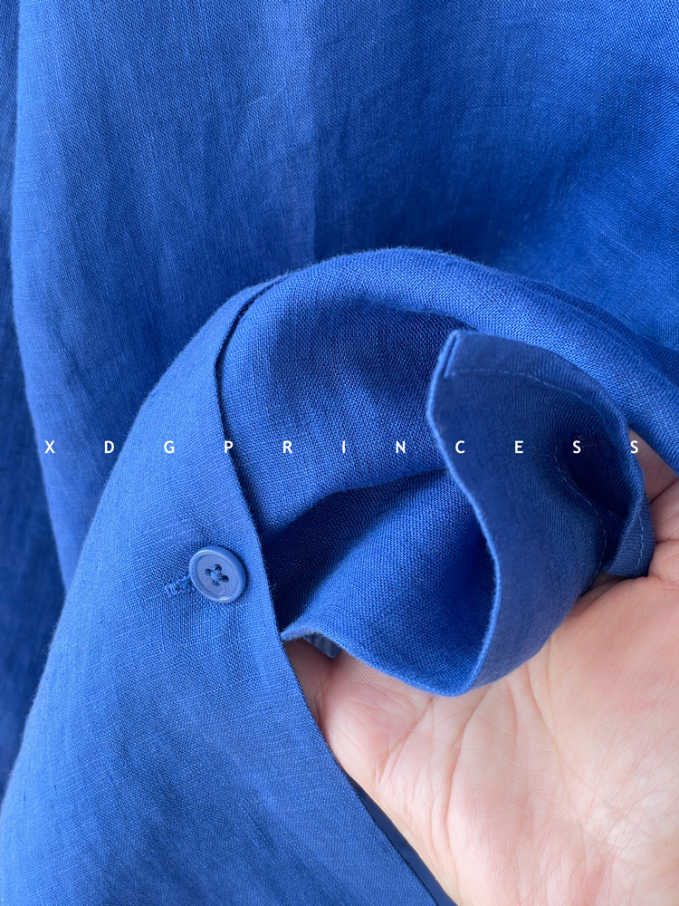 ROW 오리지널 상품~클라인 블루 린넨 여성용 긴팔 셔츠 봄 여름 루즈한 레이지 스타일 하이엔드 탑스토어 가기