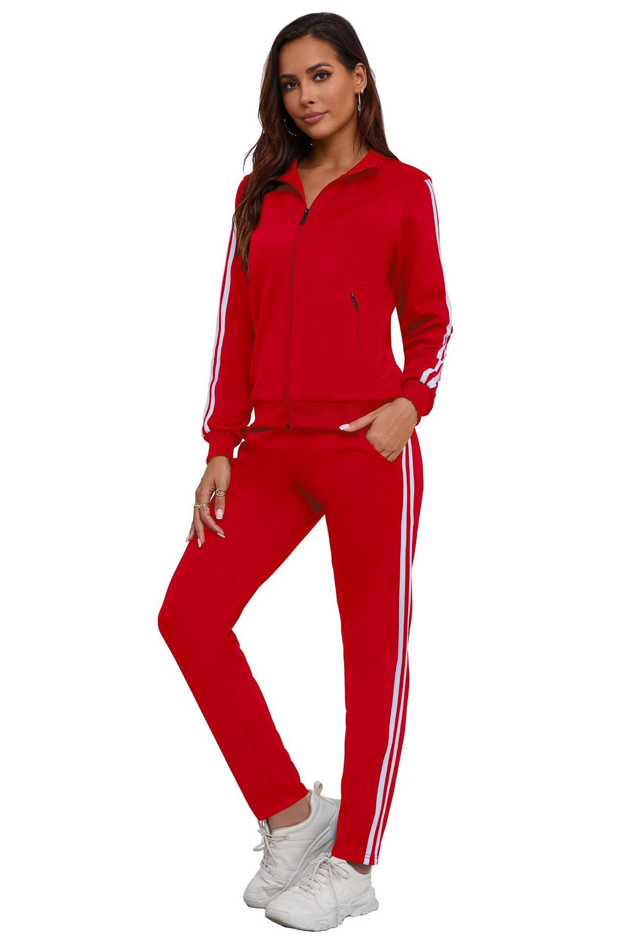 2025 Amazon 새로운 스포츠 슈트 3D 프린팅 피트니스 지퍼 스탠드 칼라 재킷 카디건 캐주얼 스웨트 팬츠 슈트