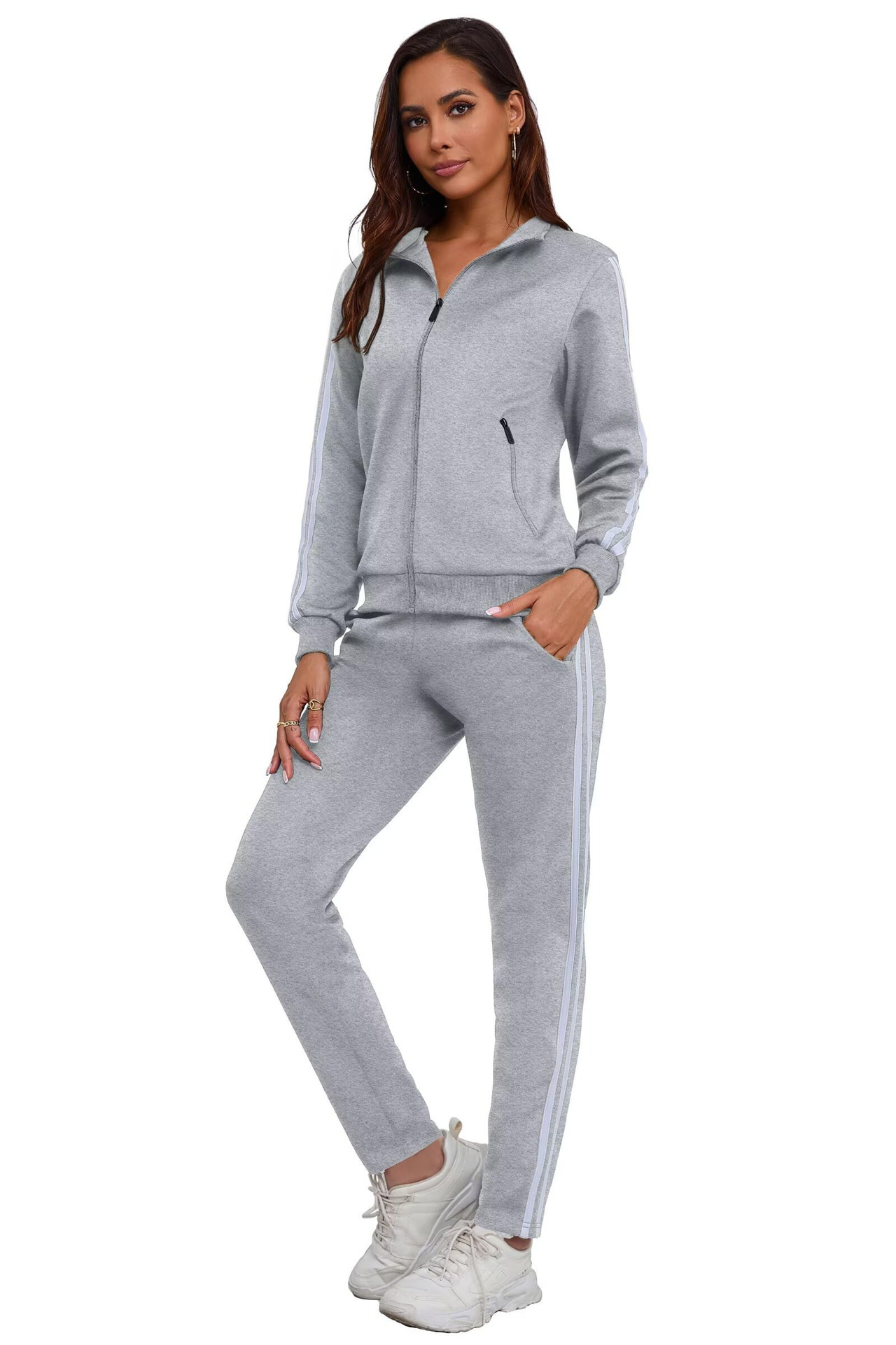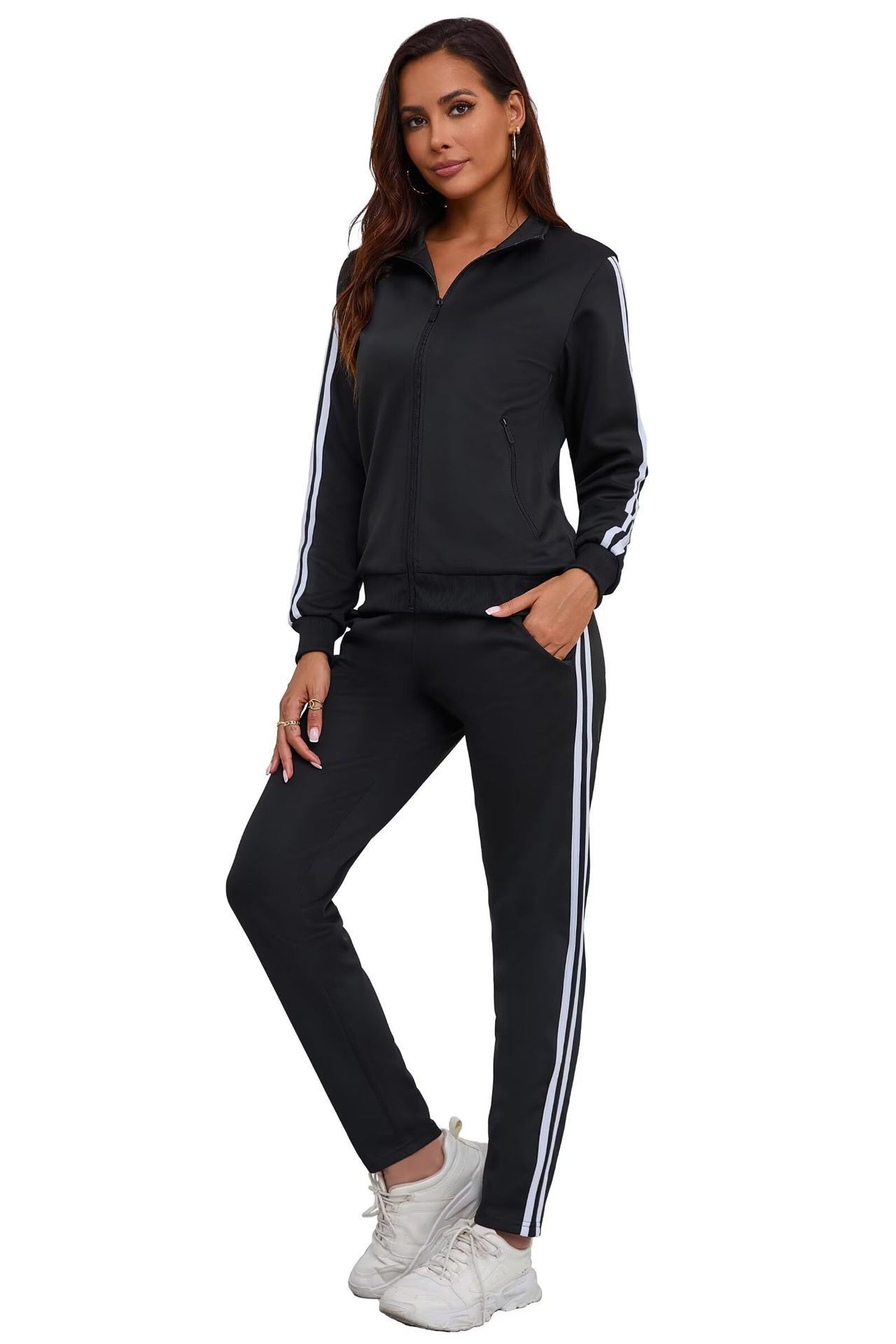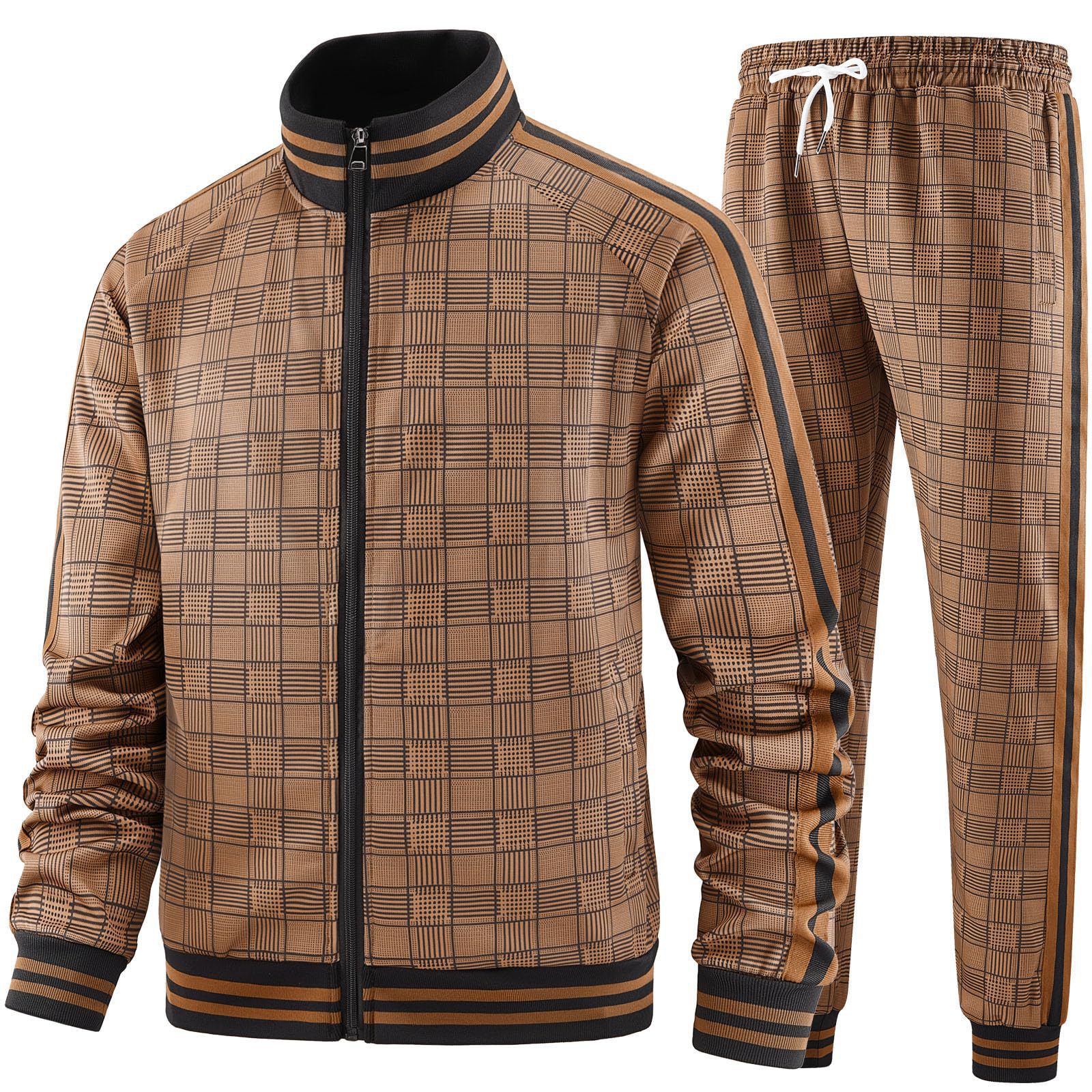 2025 Amazon 새로운 스포츠 슈트 3D 프린팅 피트니스 지퍼 스탠드 칼라 재킷 카디건 캐주얼 스웨트 팬츠 슈트스토어 가기