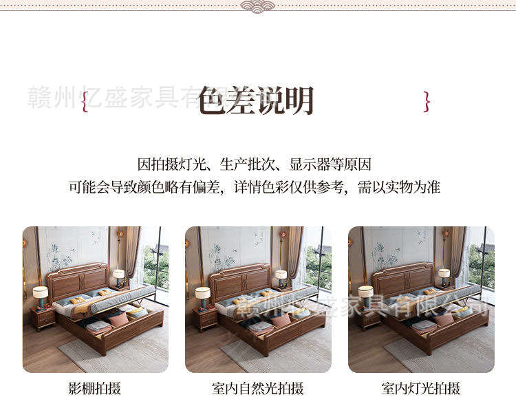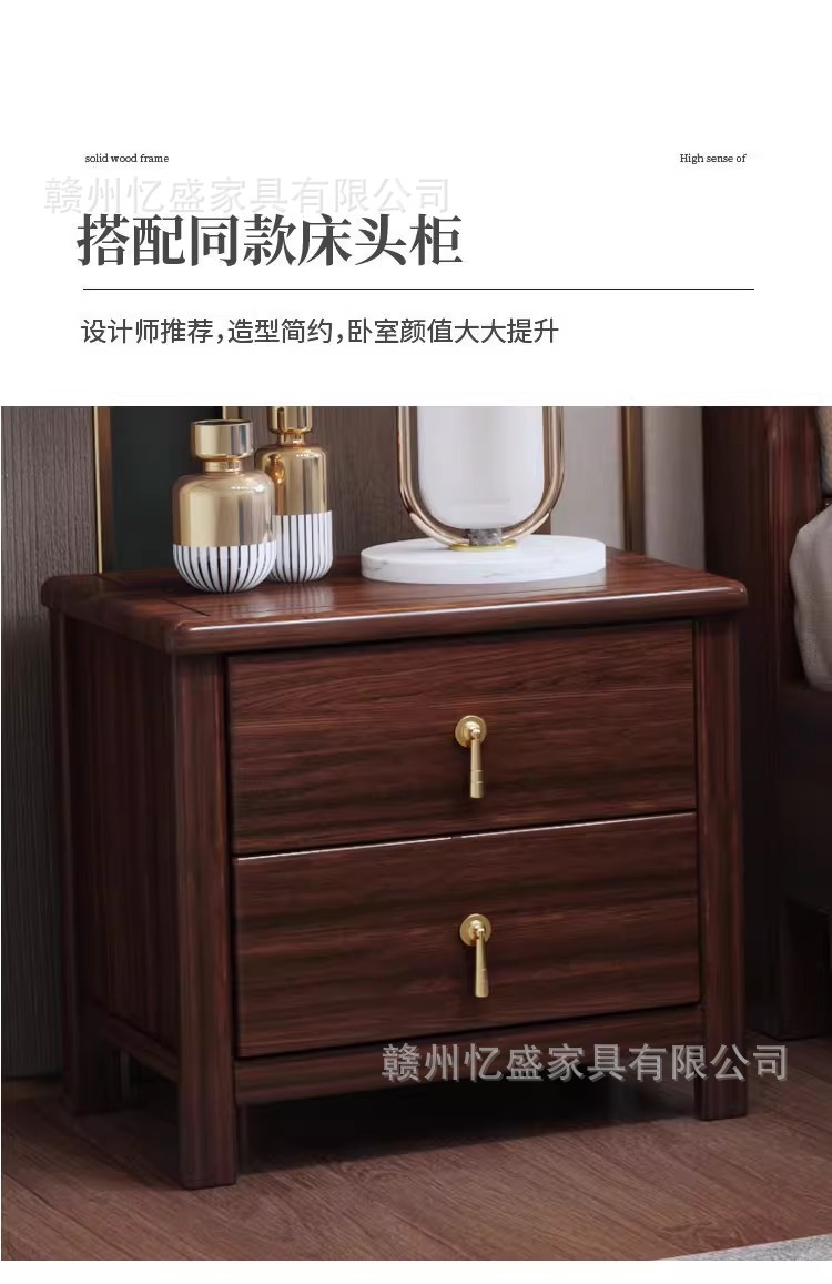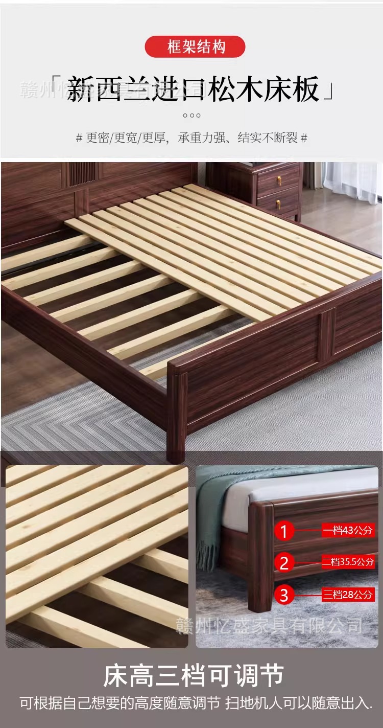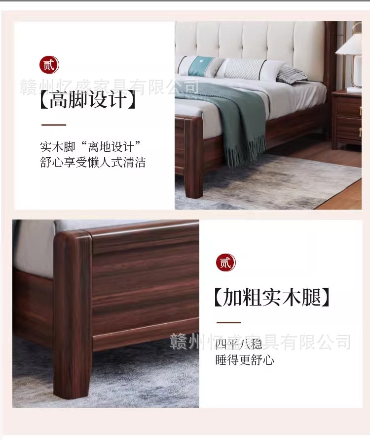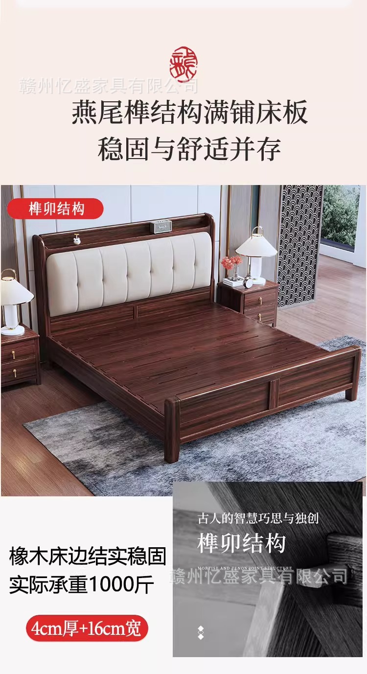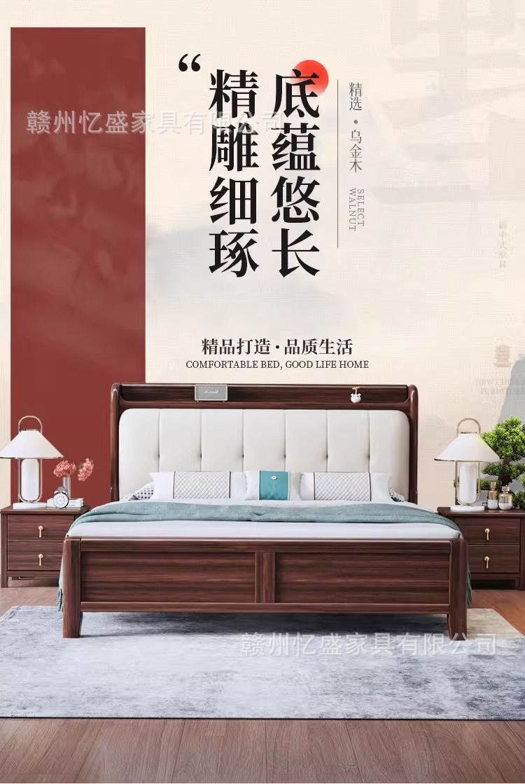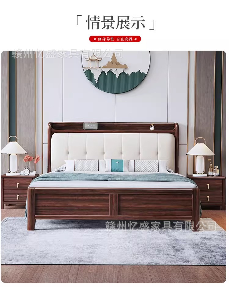 새로운 중국 스타일 검은 골드 우드 솔리드 우드 침대 1.8m 더블 침대 라이트 럭셔리 현대 미니멀리스트 마스터 침실 소프트 등받이 1.5m 수납 침대스토어 가기