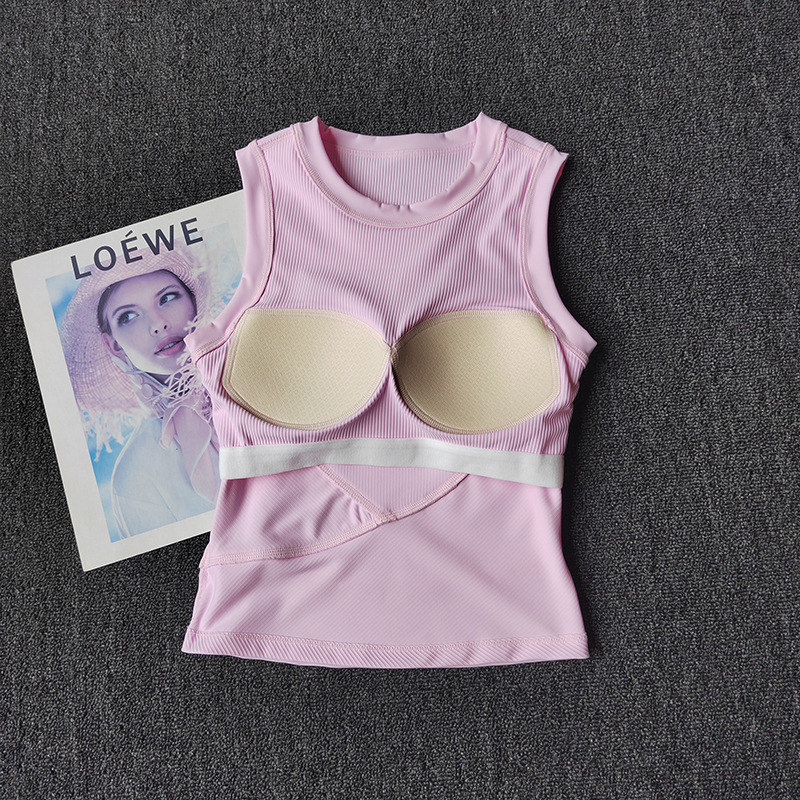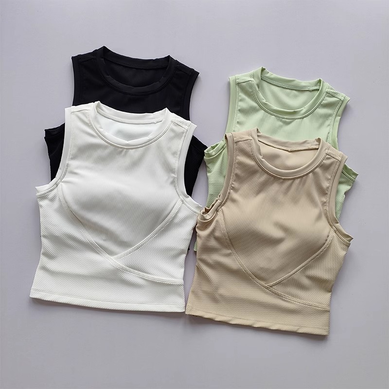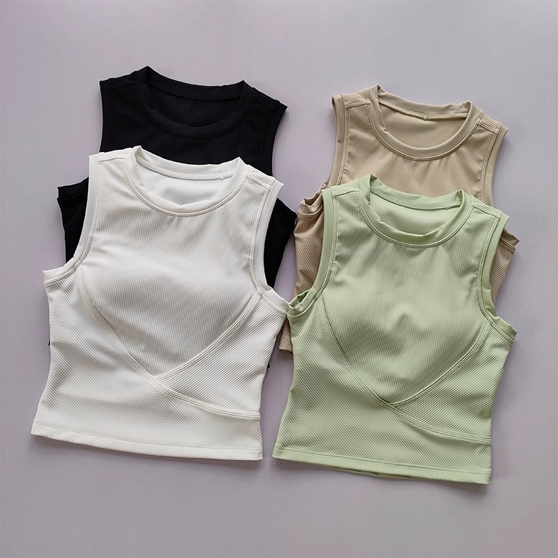 时尚外穿瑜伽服运动背心带胸垫遮副乳运动内衣女紧身显瘦健身上衣义乌庚秋服装厂为您倾情打造全新系列瑜伽背心,将舒适、时尚与功能性完美融合,助您在每一次瑜伽练习中,都能感受到前所未有的自在与美好