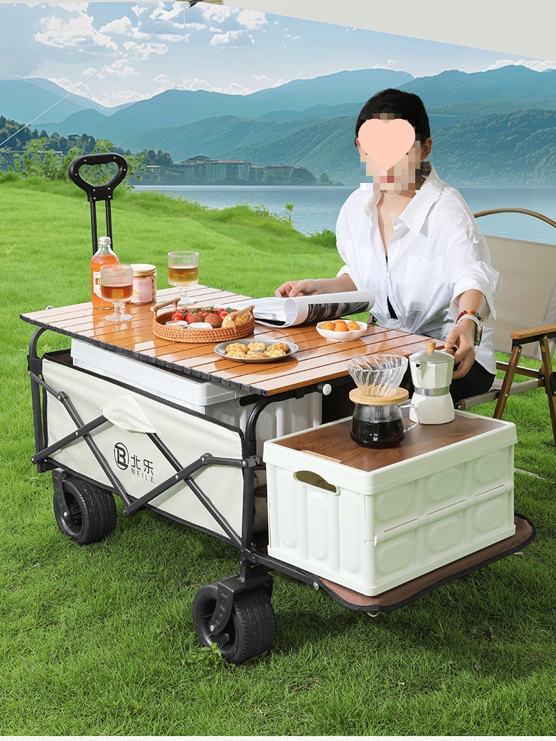 새로운 캠핑 카트 접이식 야외 핸드 푸시 피크닉 카트 휴대용 캠프 트레일러 트롤리 다기능 스톨
