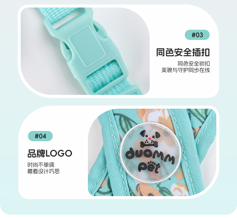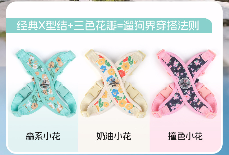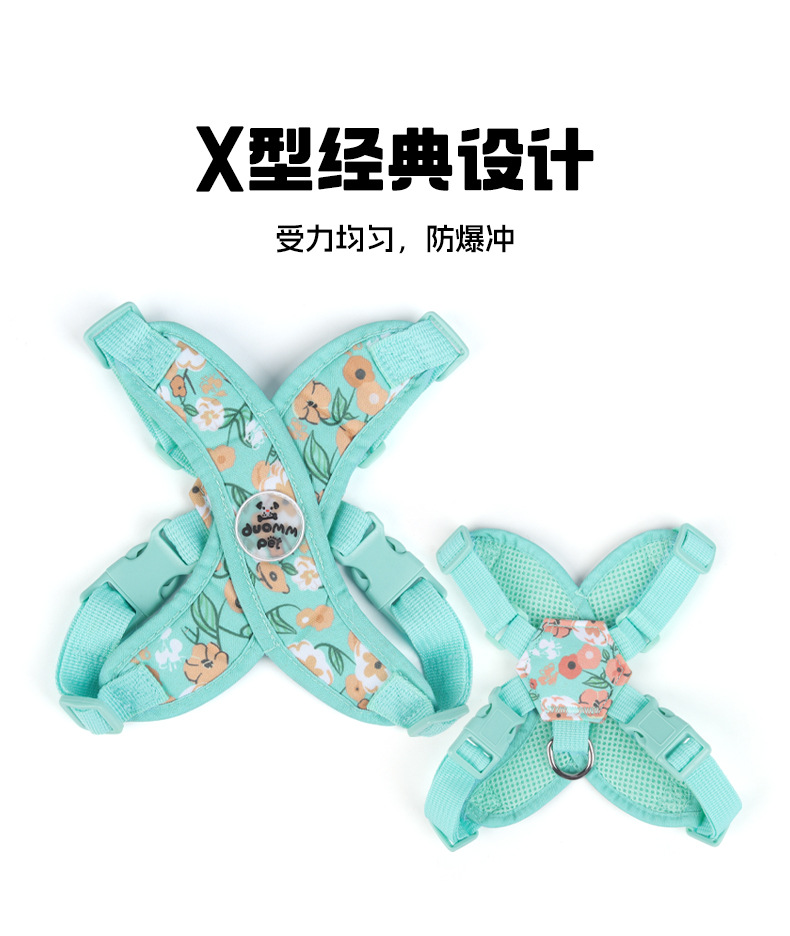 X자형 목 걸림 방지 애완동물 외출 하네스, 견인 로프, 방폭 조끼 스타일 프린트 캔버스 개 하네스