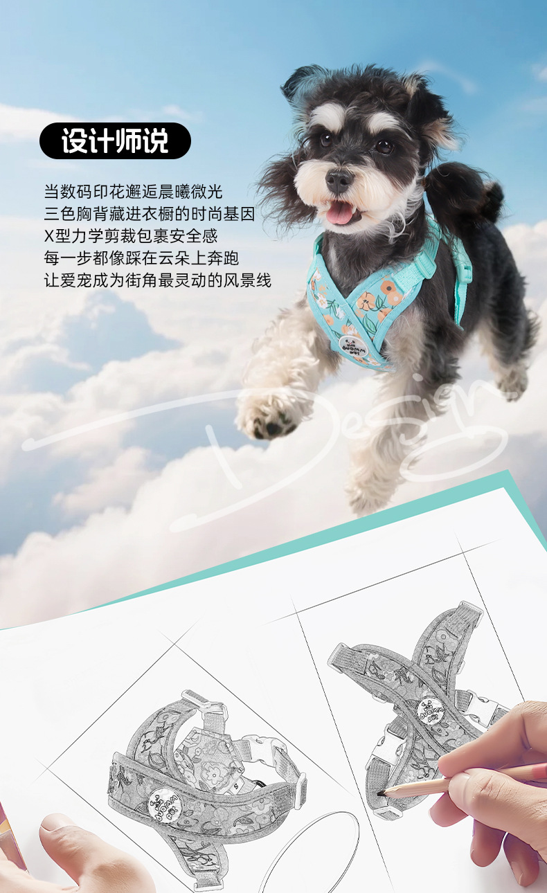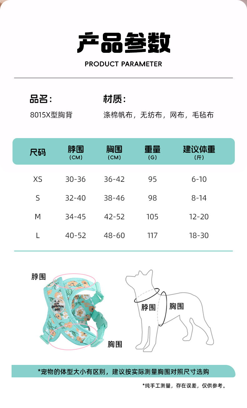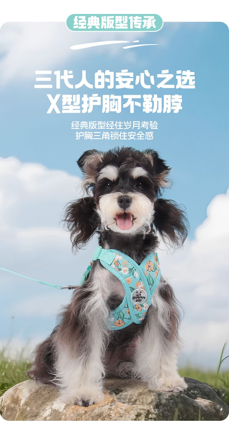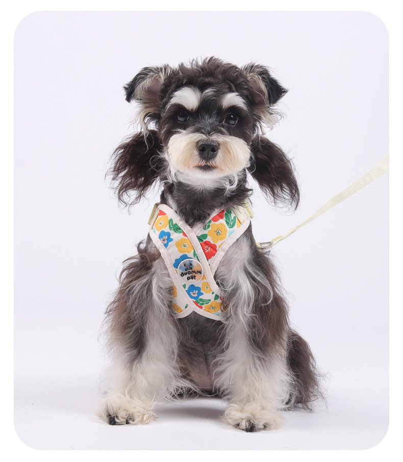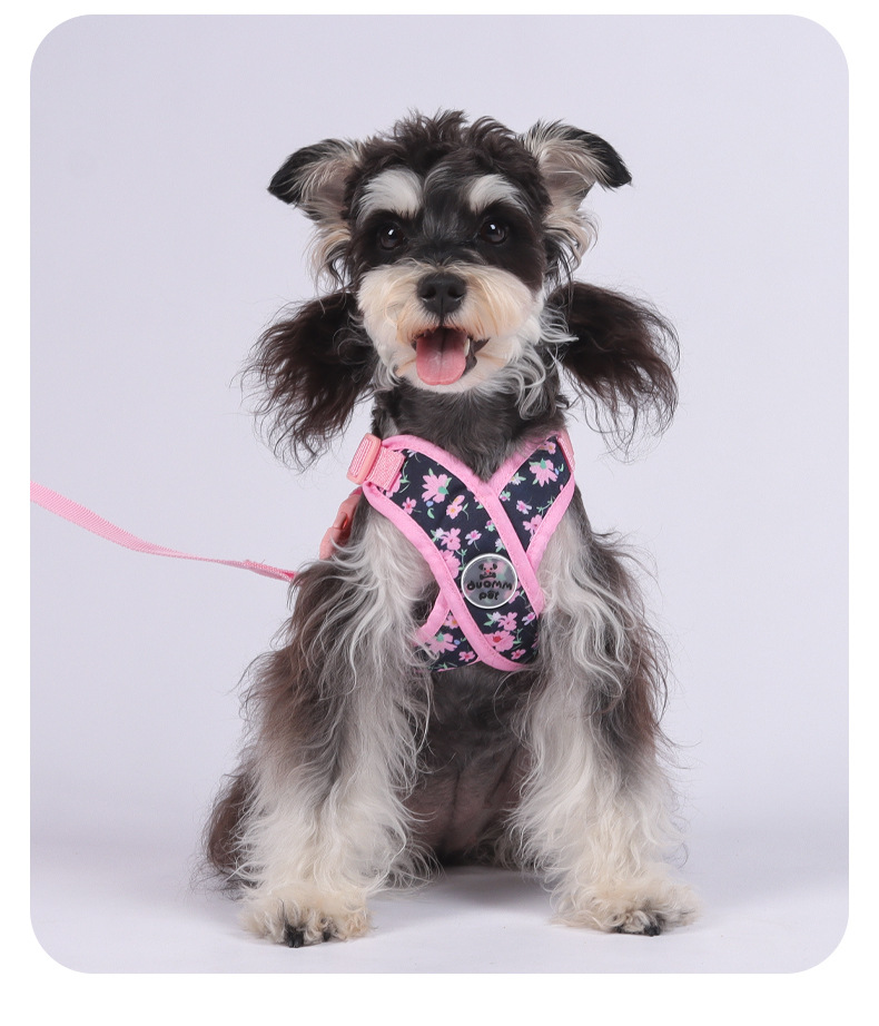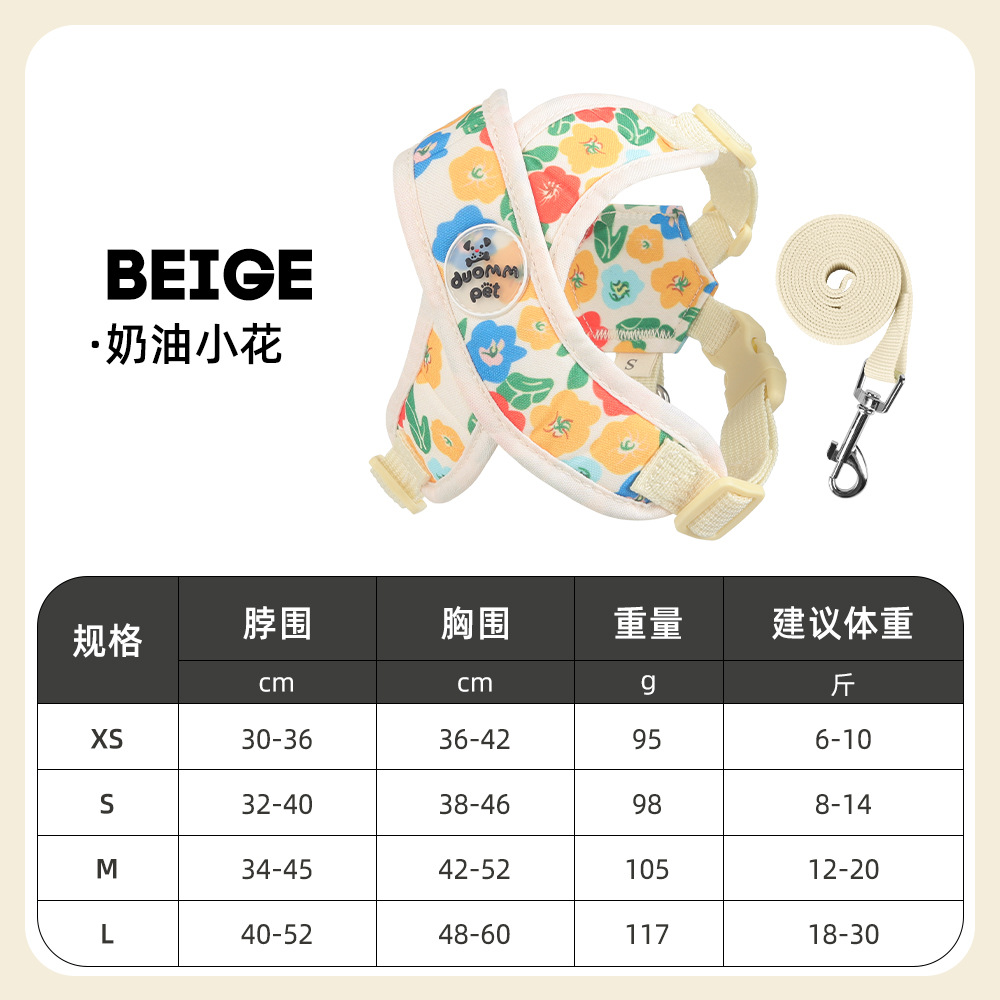 X자형 목 걸림 방지 애완동물 외출 하네스, 견인 로프, 방폭 조끼 스타일 프린트 캔버스 개 하네스스토어 가기