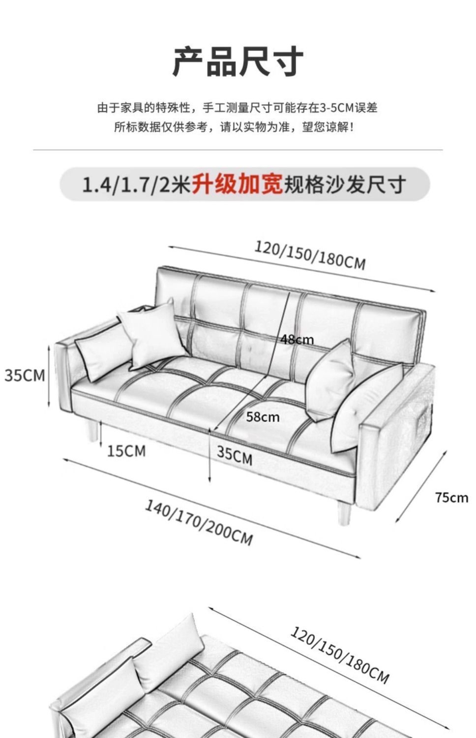 • 확장 소파 베드 2m * 1.1m (업그레이드)