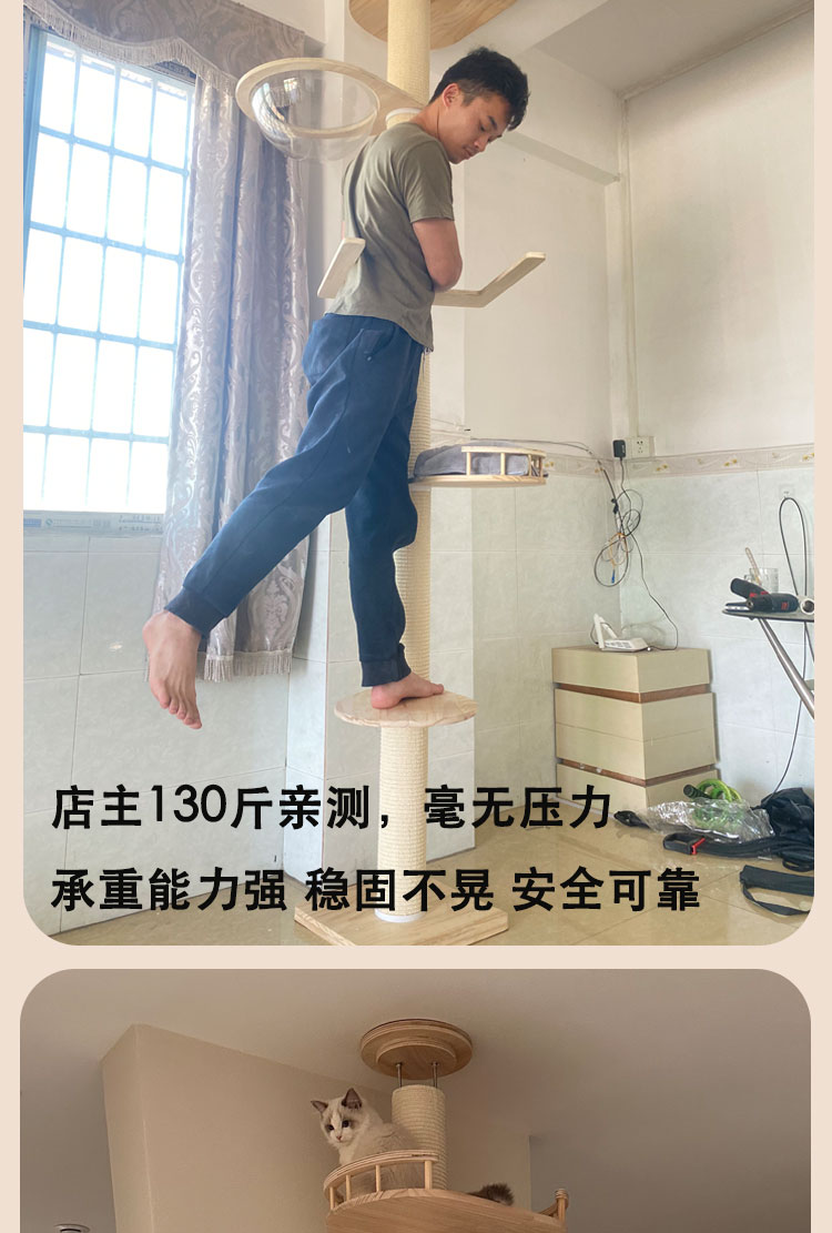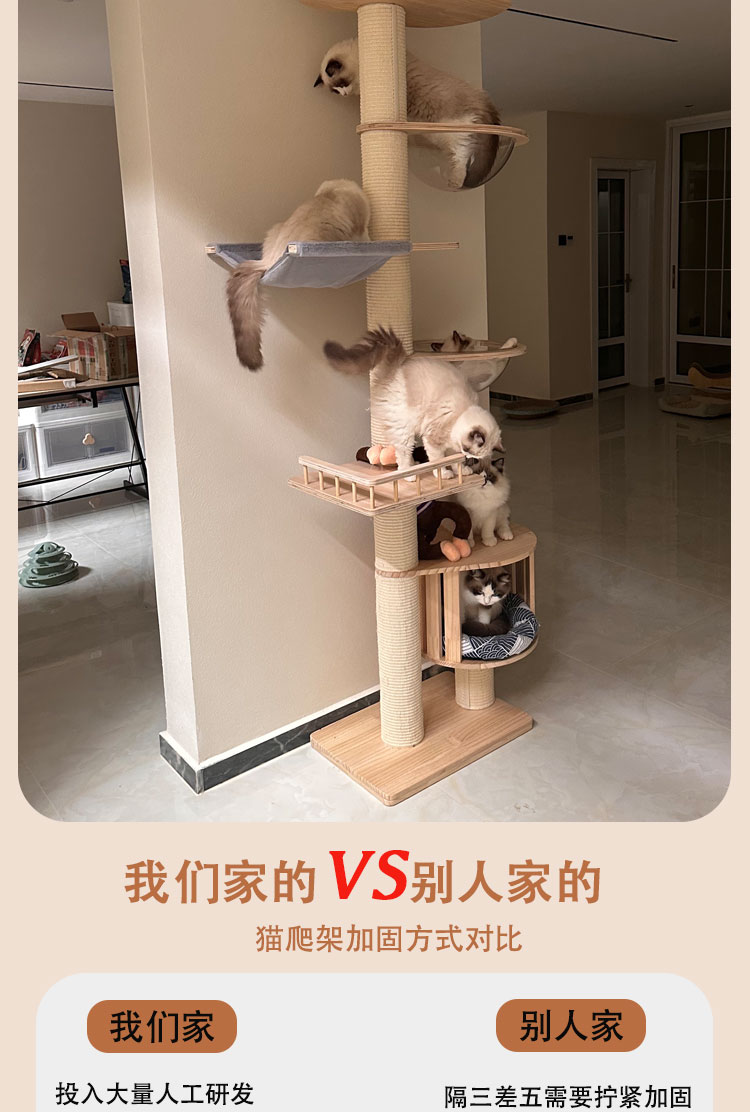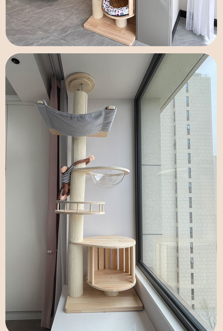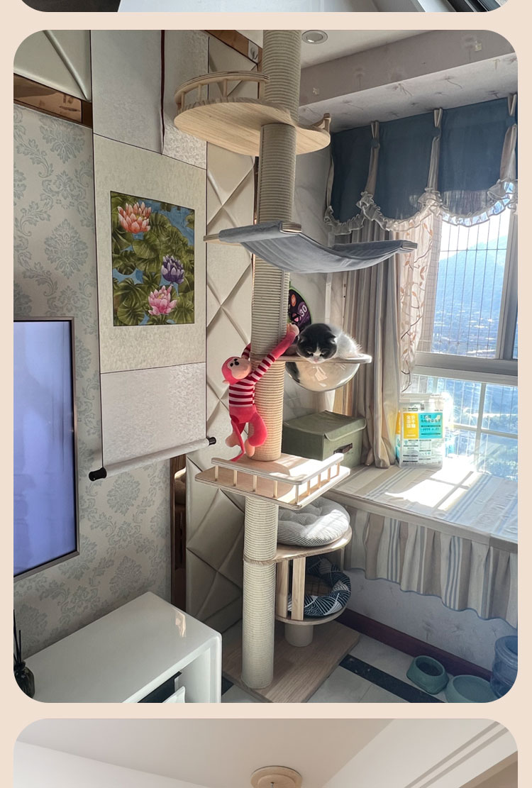 원목 고양이 클라이밍 프레임, 천둥, 천장까지 닿는 고양이 둥지, 고양이 트리, 일체형 대형 고양이 집, 고양이 스크래치 고양이 빌라스토어 가기