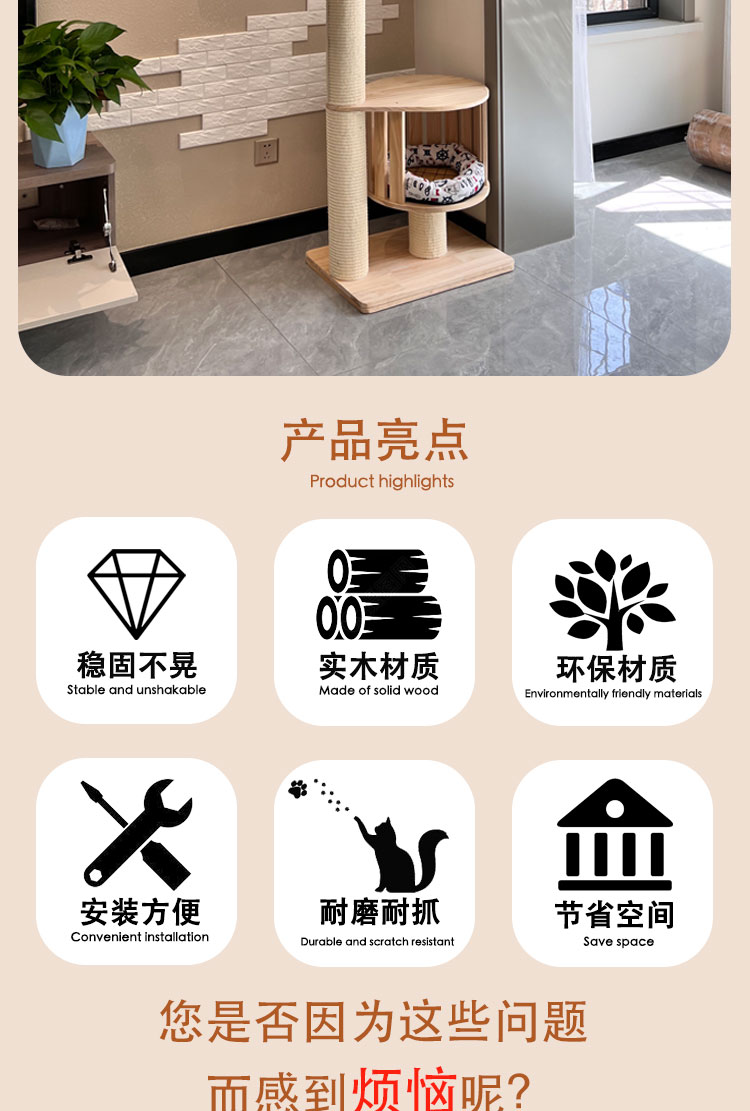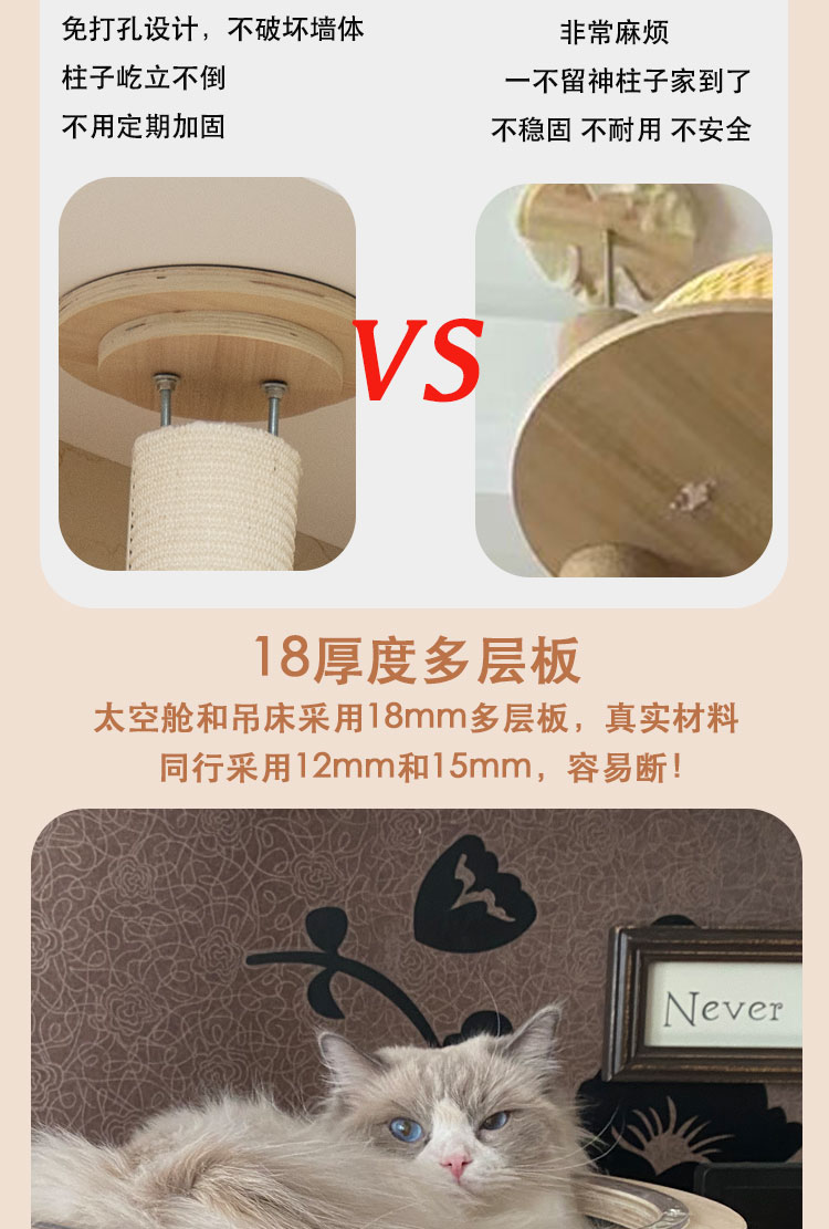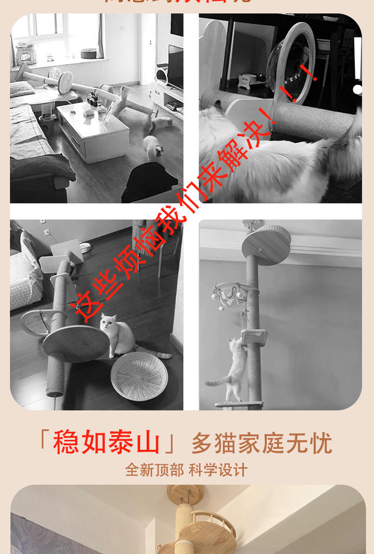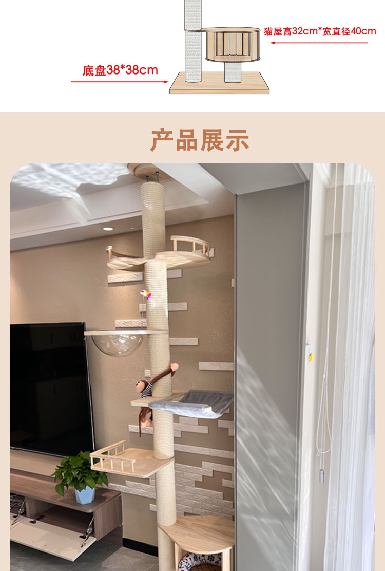 원목 고양이 클라이밍 프레임, 천둥, 천장까지 닿는 고양이 둥지, 고양이 트리, 일체형 대형 고양이 집, 고양이 스크래치 고양이 빌라스토어 가기