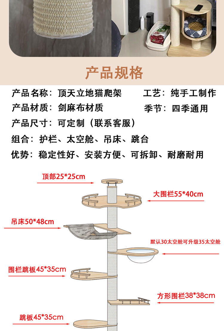 원목 고양이 클라이밍 프레임, 천둥, 천장까지 닿는 고양이 둥지, 고양이 트리, 일체형 대형 고양이 집, 고양이 스크래치 고양이 빌라