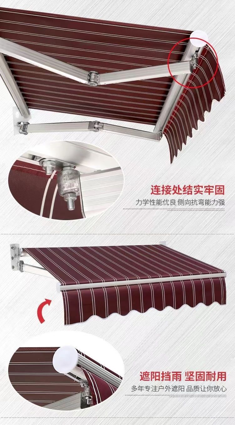 발코니에 있는 접이식 수동 개폐식 전동 도어가 있는 차양, 방수 처마 텐트, 야외 안뜰 차양