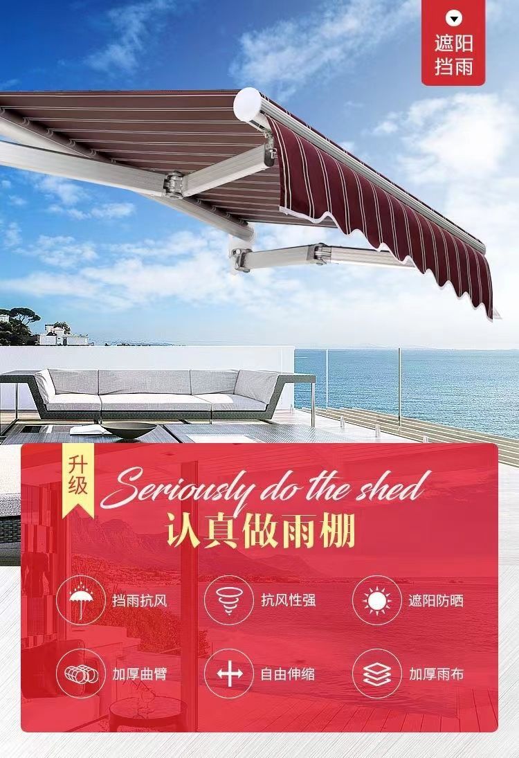 발코니에 있는 접이식 수동 개폐식 전동 도어가 있는 차양, 방수 처마 텐트, 야외 안뜰 차양스토어 가기