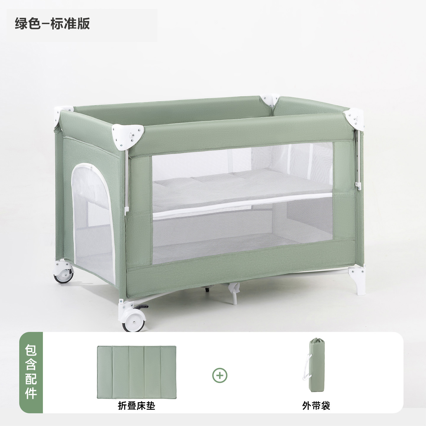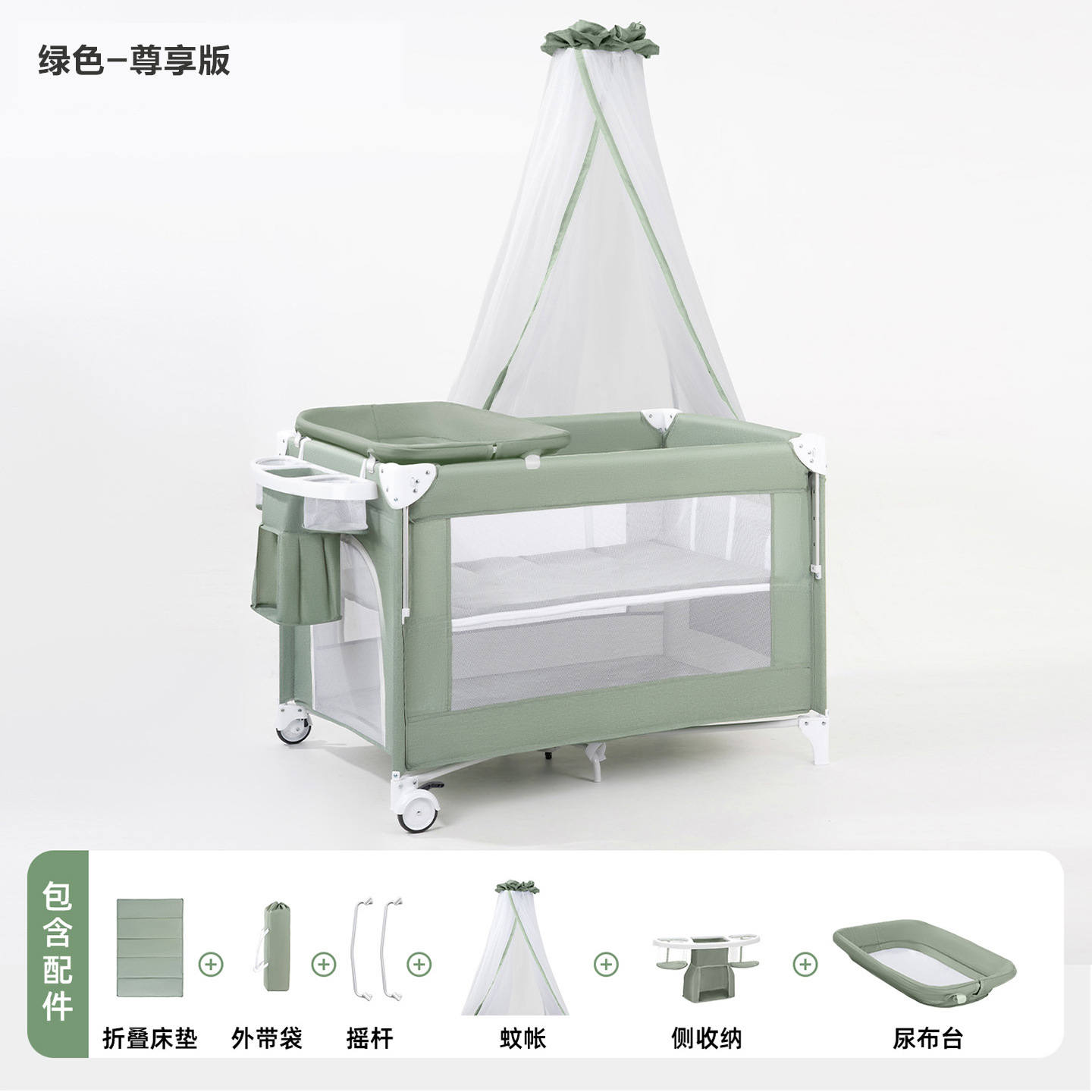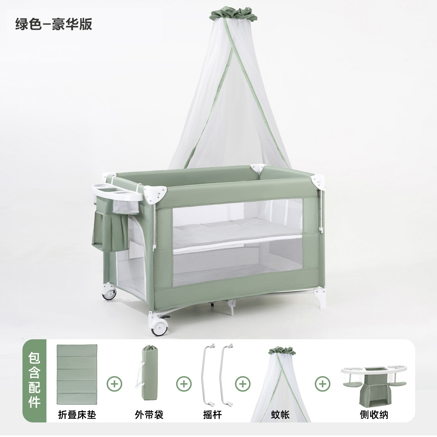 • 게임침대-그린-5종세트 [모기장+흔들침대봉+측면수납포켓+기저귀교환대+침대벨] (CYT5)