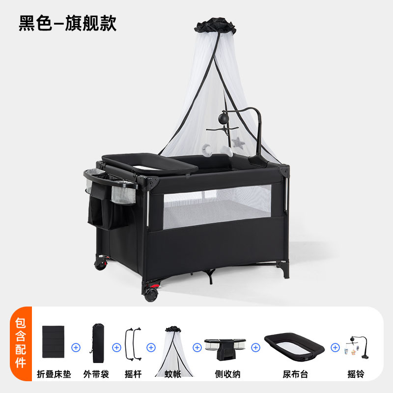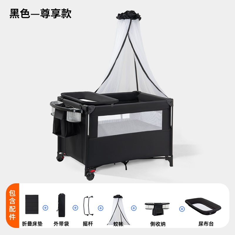• 플레이베드 - 블랙 - 5종세트 [모기장+침대레벨+측면수납포켓+기저귀교환대+침대벨] (CYT5)