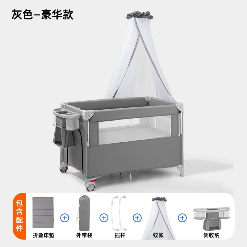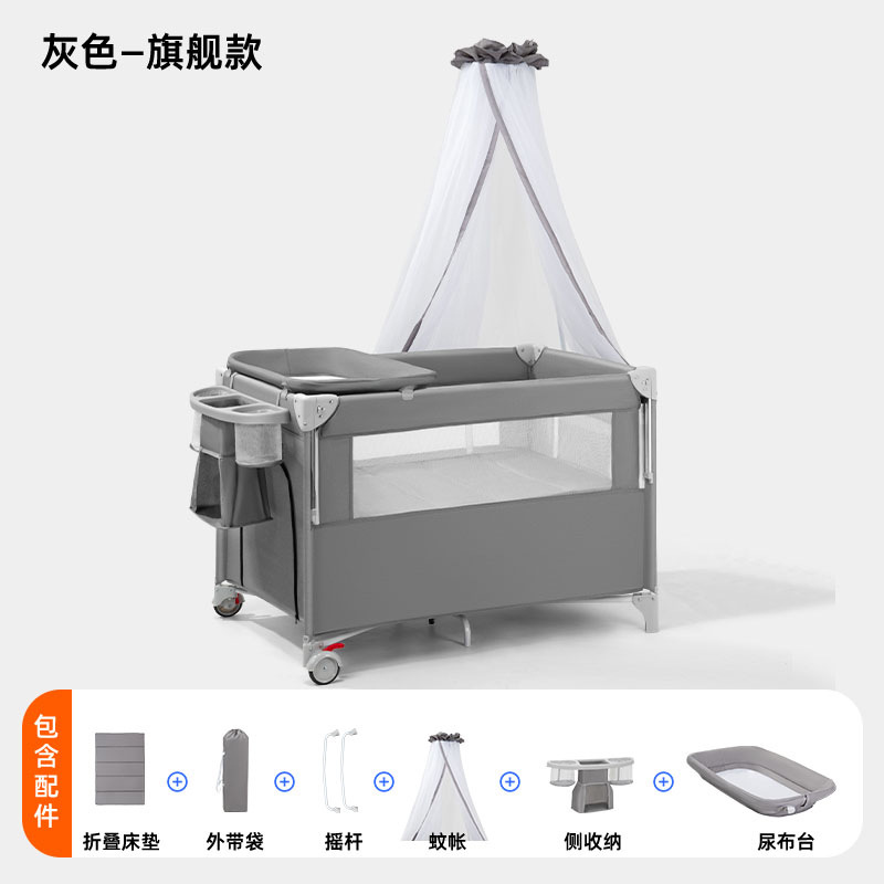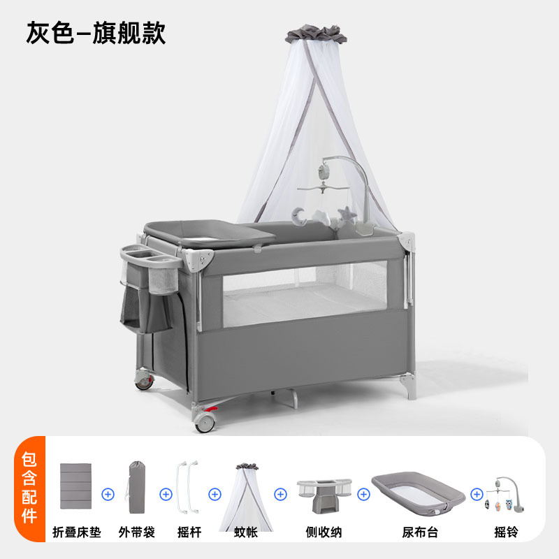 • 플레이베드 - 그레이 - 5종세트 [모기장+침대바+측면수납포켓+기저귀교환대+침대벨] (CYT5)