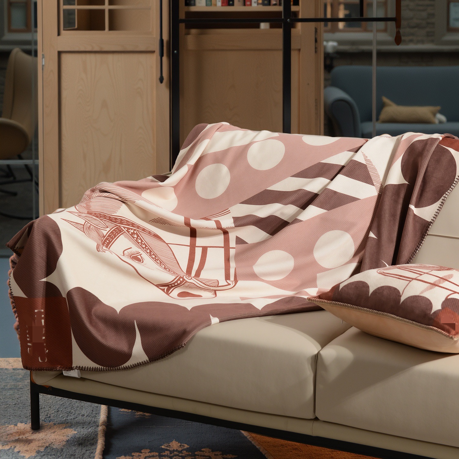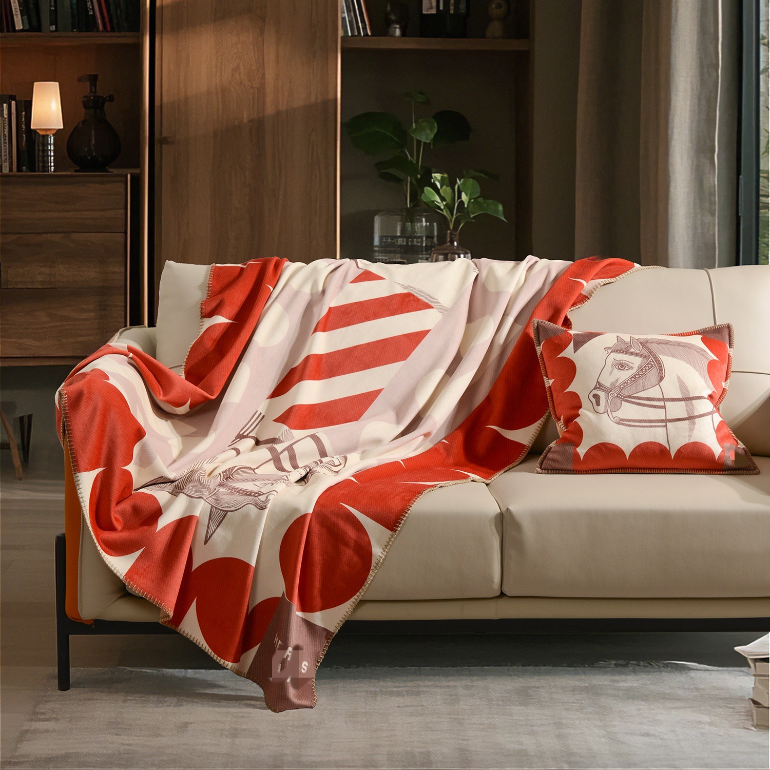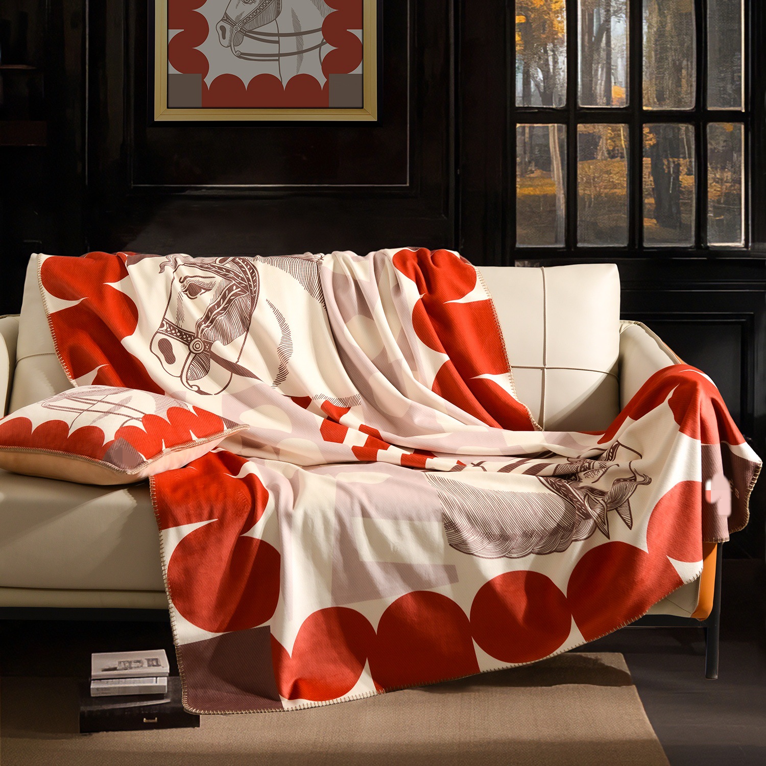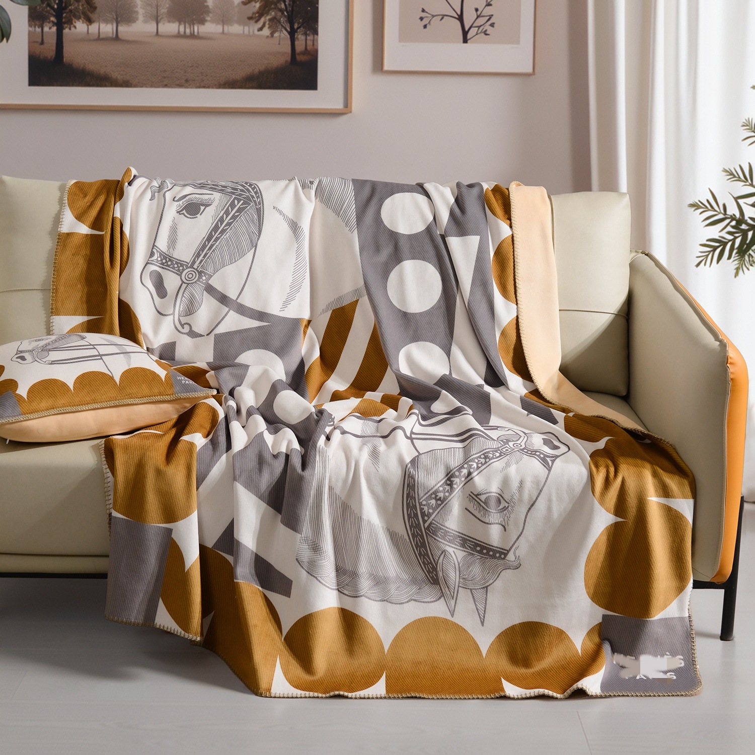라이트 럭셔리 패션 H 말 프린트 브로케이드 여우 벨벳 담요 하이 엔드 선물 담요 대외 무역 국경 간 소파 담요 프린트 담요스토어 가기