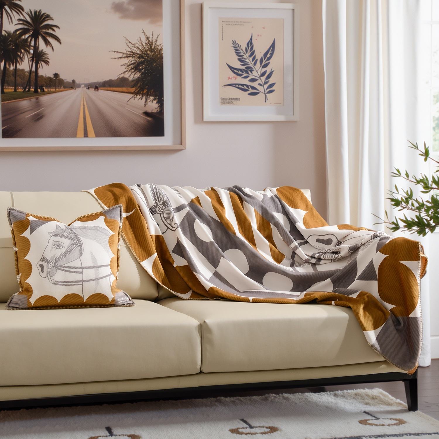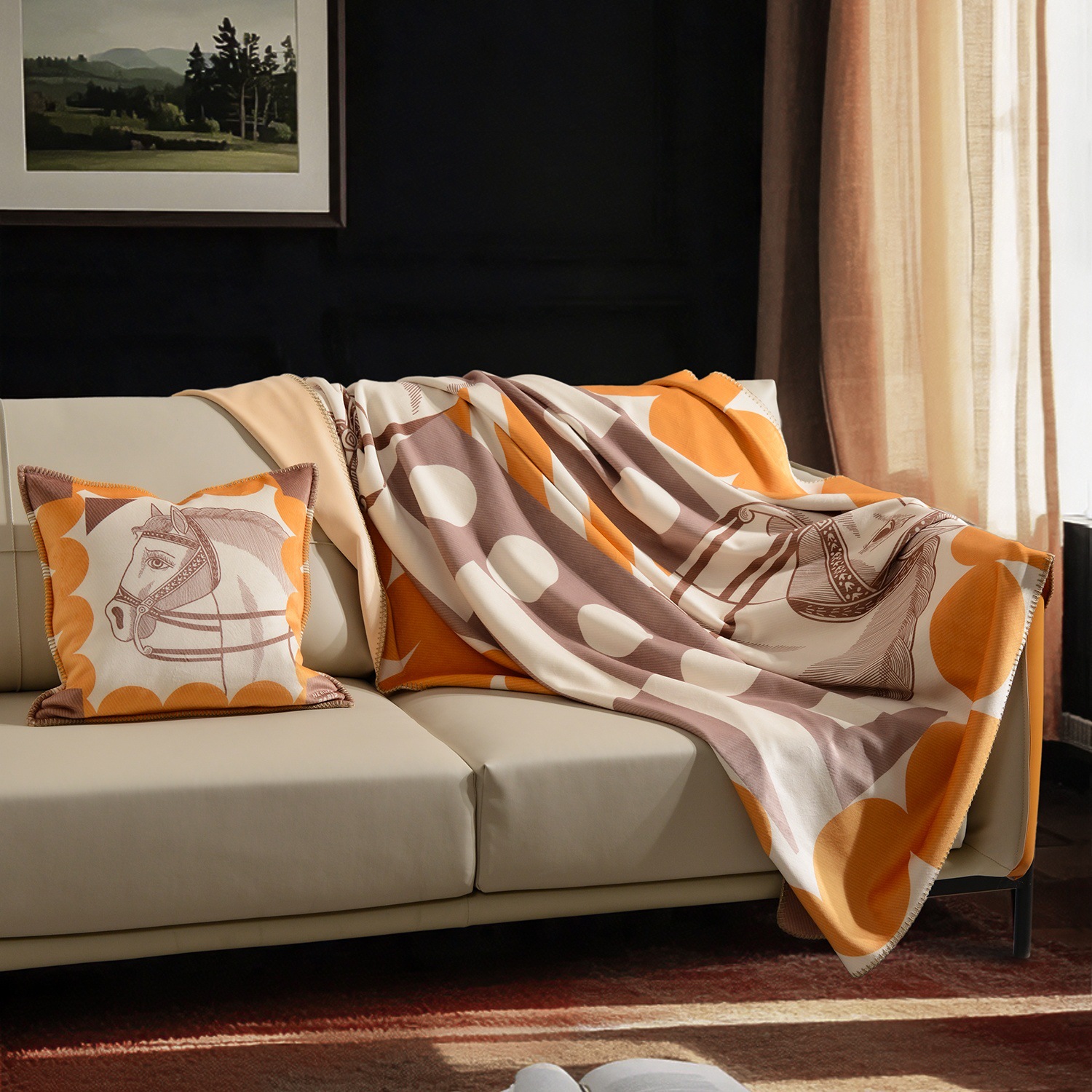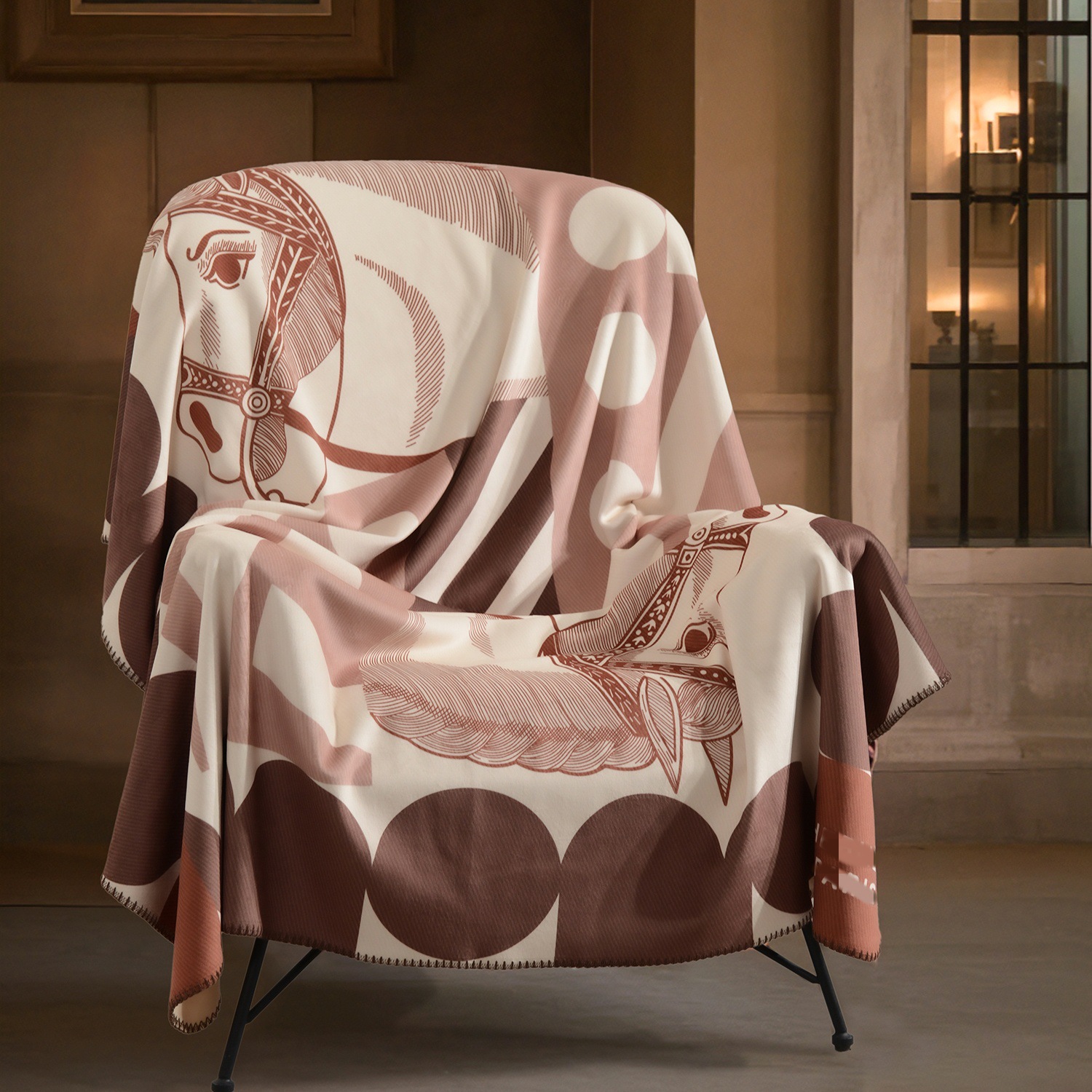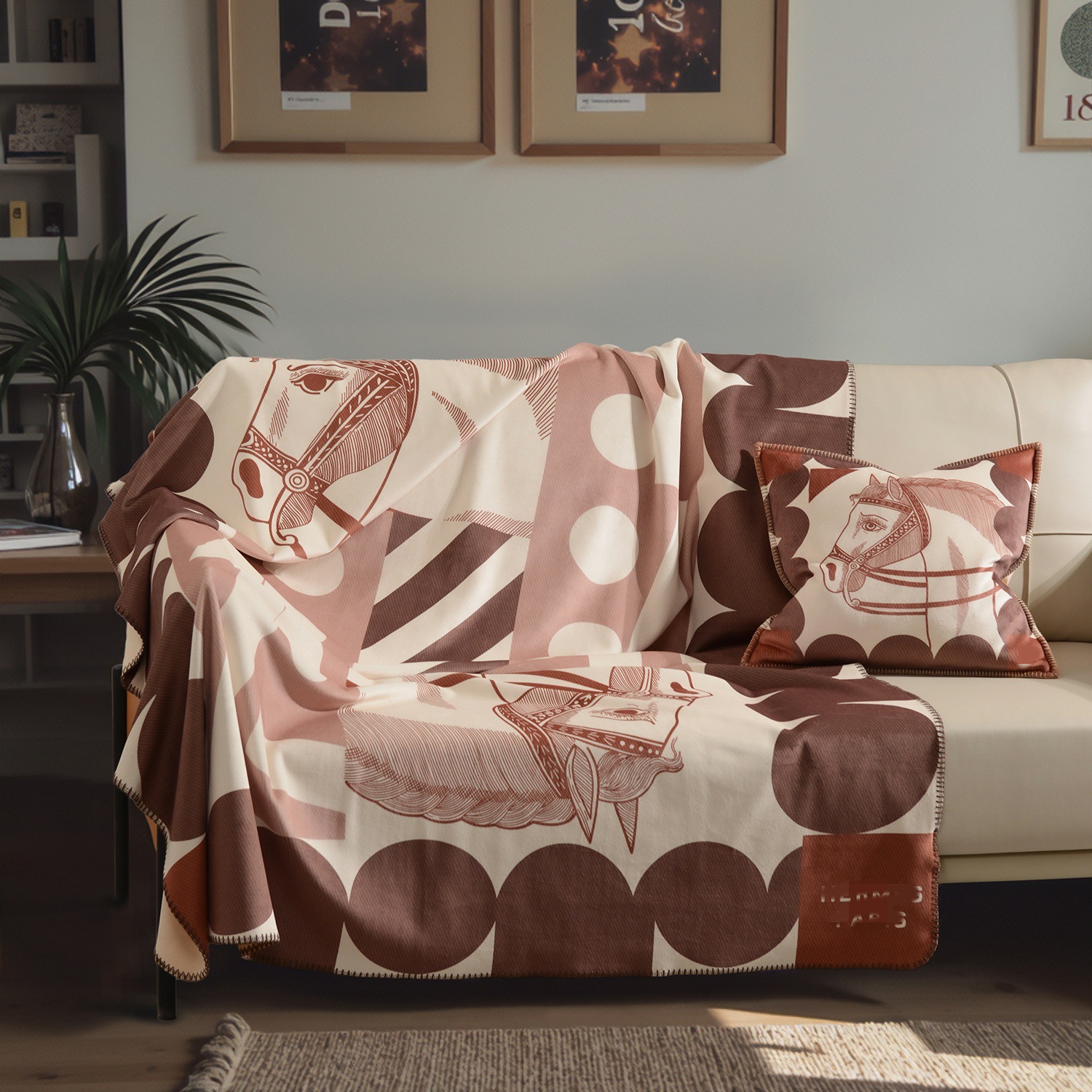 라이트 럭셔리 패션 H 말 프린트 브로케이드 여우 벨벳 담요 하이 엔드 선물 담요 대외 무역 국경 간 소파 담요 프린트 담요스토어 가기