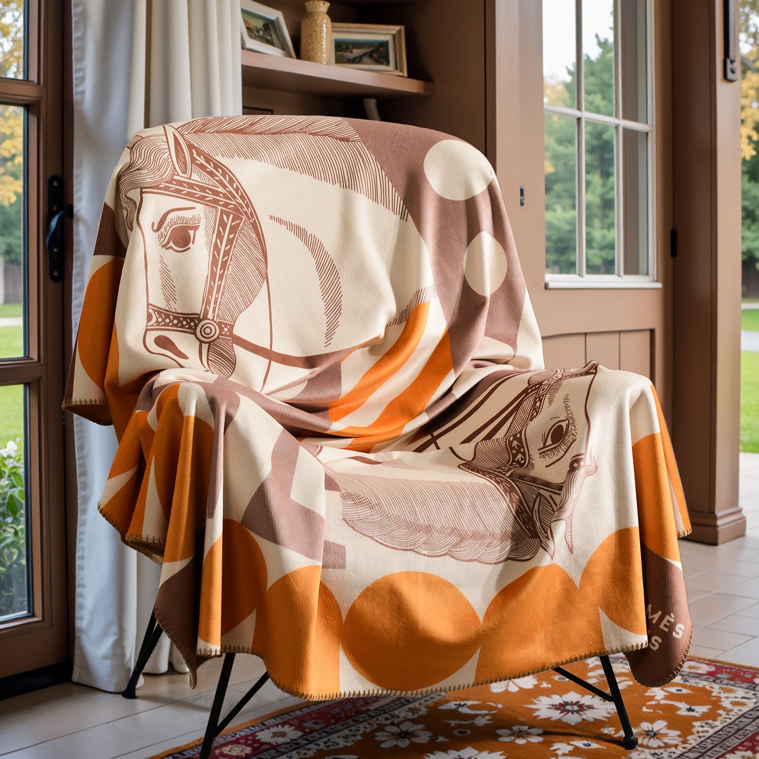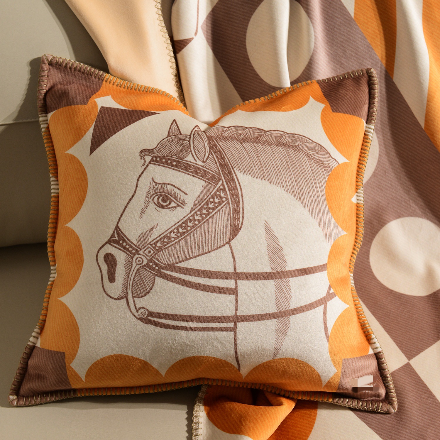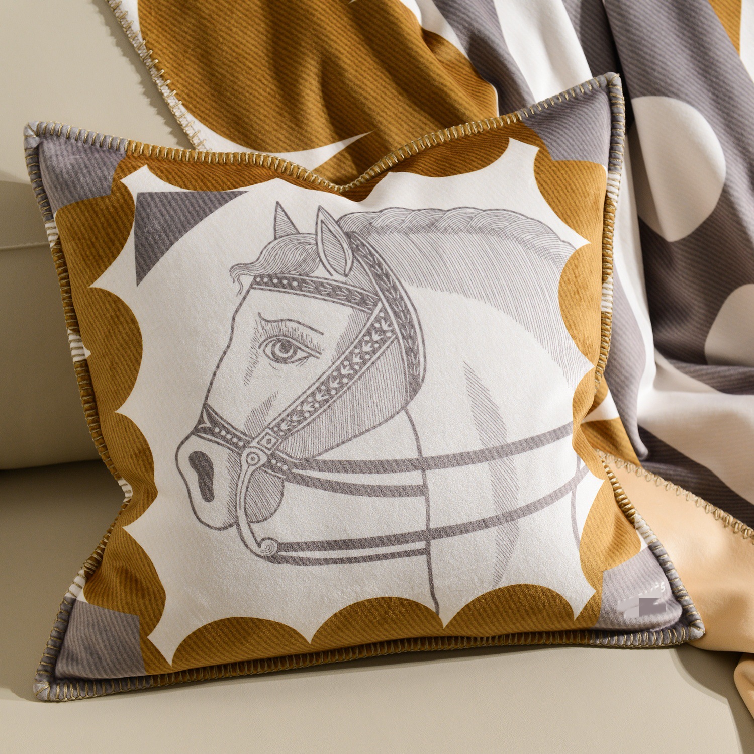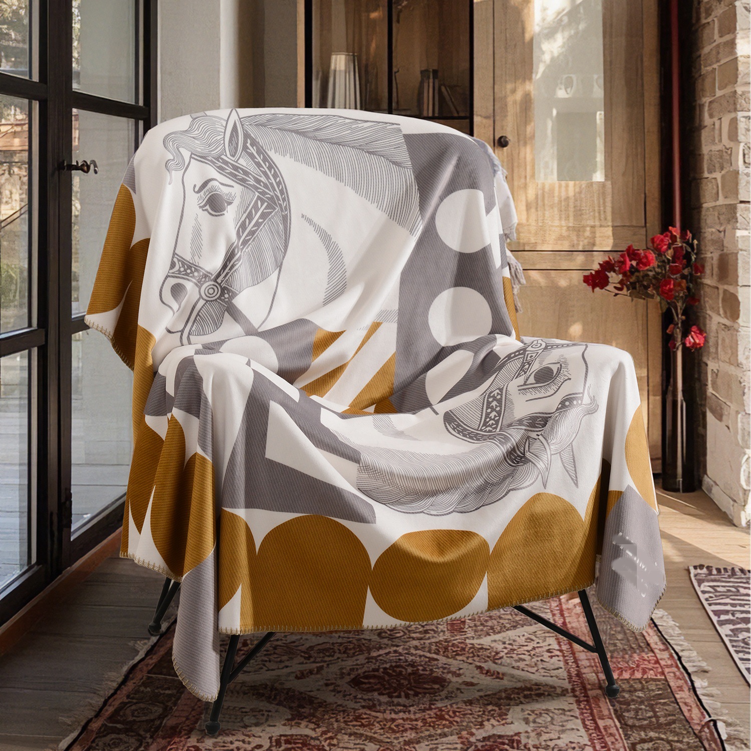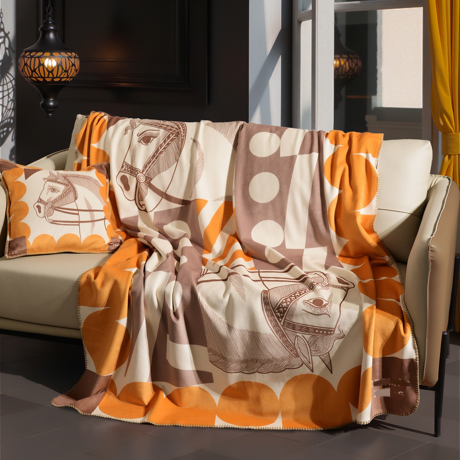 라이트 럭셔리 패션 H 말 프린트 브로케이드 여우 벨벳 담요 하이 엔드 선물 담요 대외 무역 국경 간 소파 담요 프린트 담요