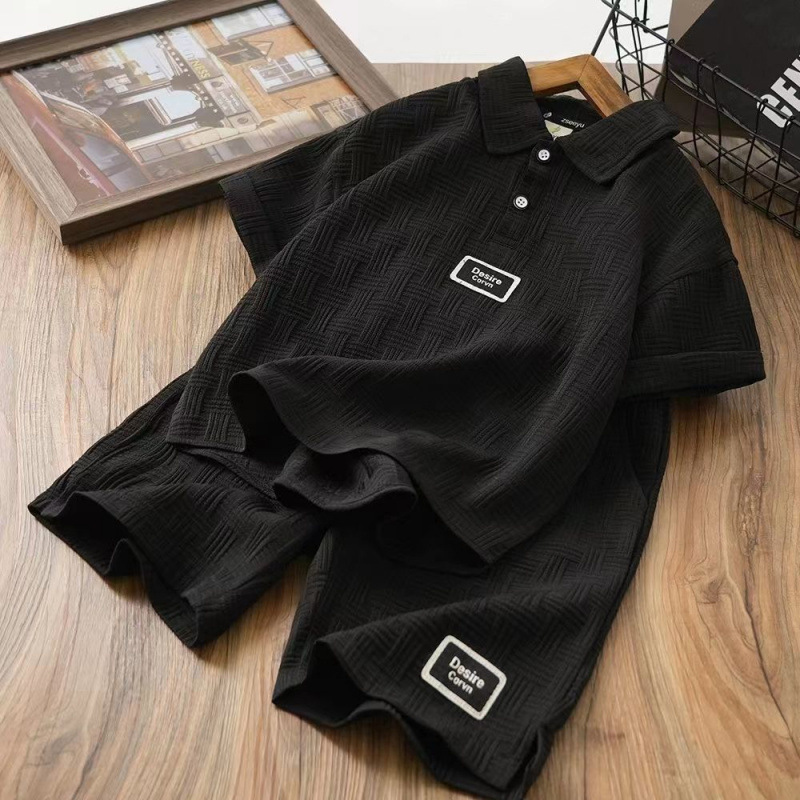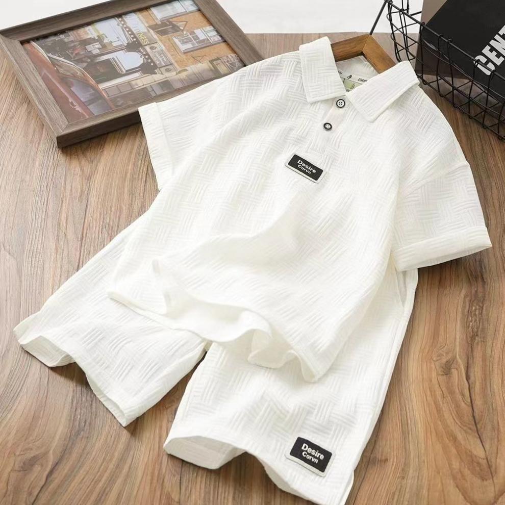 남아용 폴로 반팔 양복, 아동용 여름 캐주얼 신작, 중대형 아동용, 멋진 스트리트 스타일 여름 투피스 세트